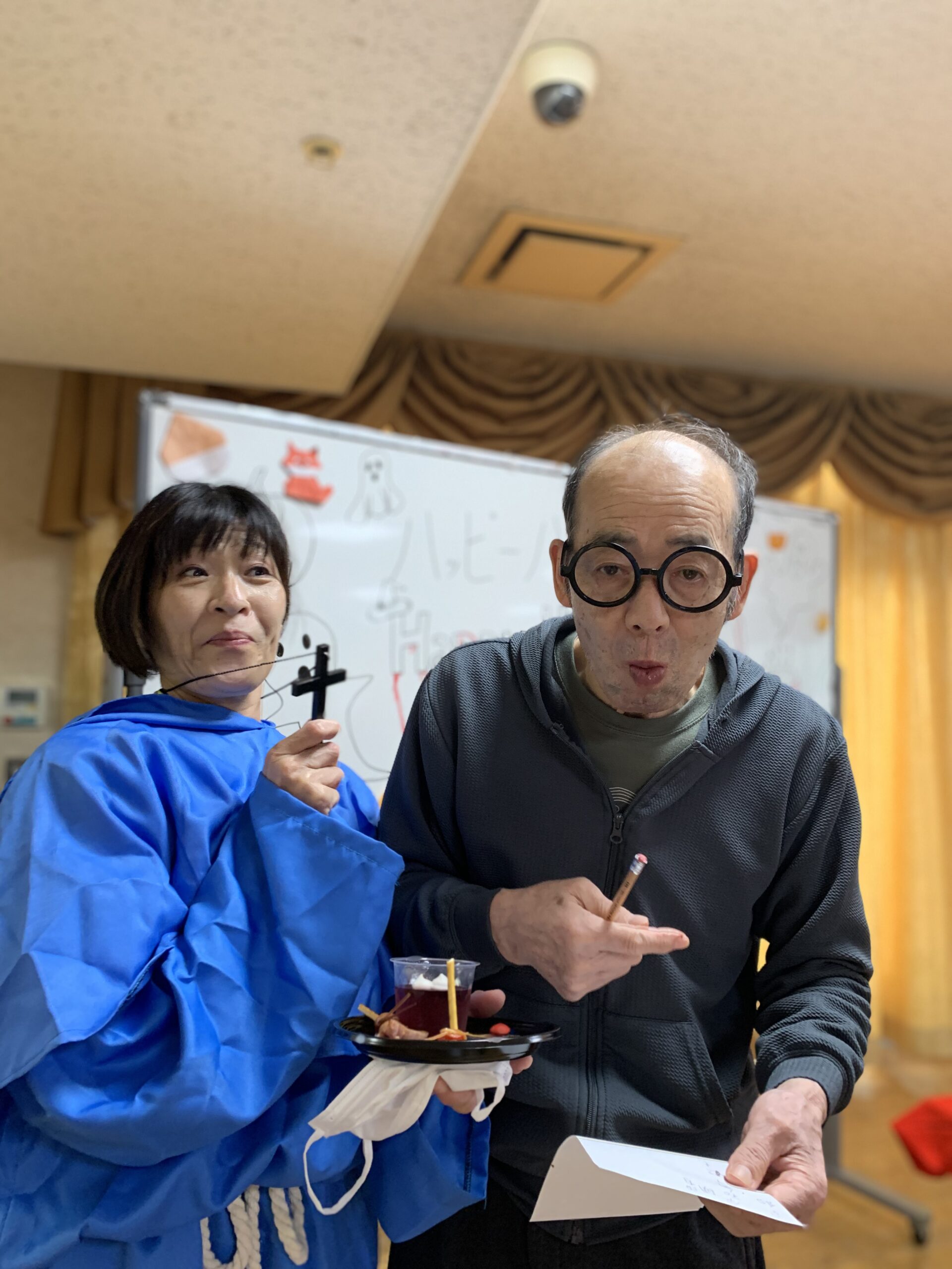 職員がそれぞれ仮装し皆様をお出迎え♪毒りんごを持った魔女がいたり…かぼちゃのお化けにピエロ🤡などたくさん♪
