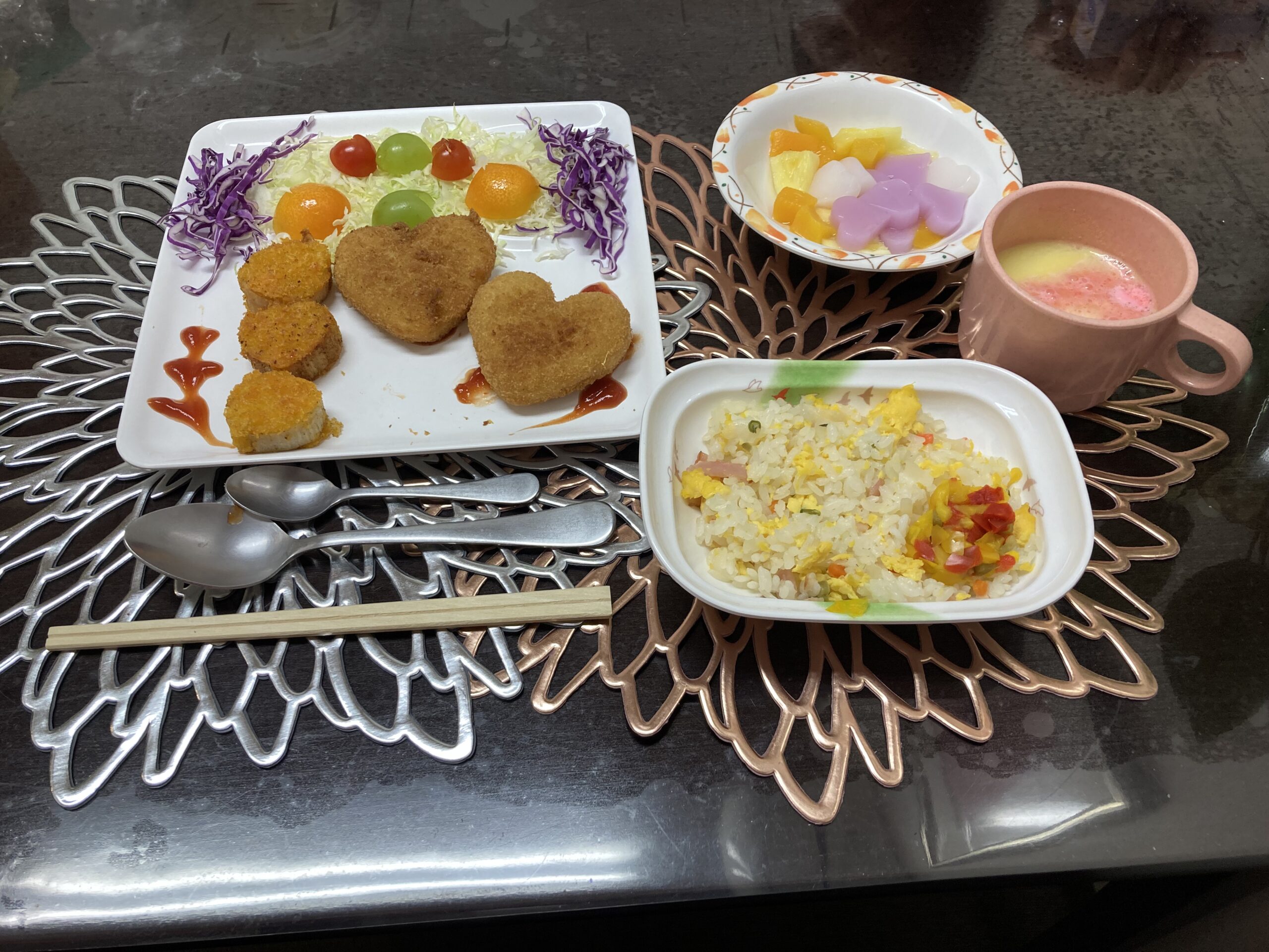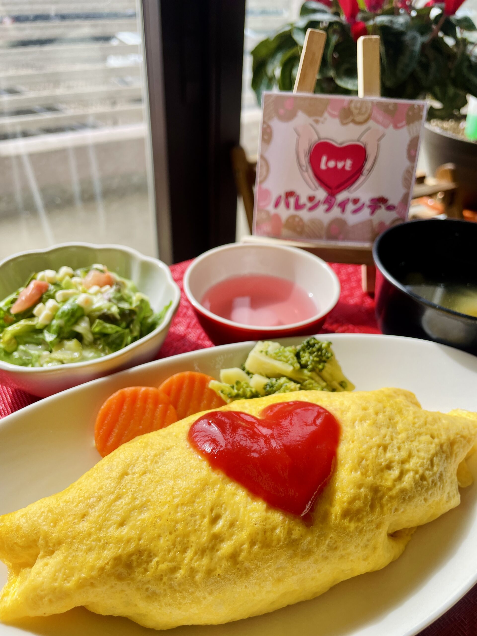 本日はバレンタインということで、お昼はハートがかかれたオムライス、おやつはチョコレートを使ったおやつを召し上がって頂きました! 「おいしいね!」と言ってくださり、皆様たくさん召し上がられておりました!