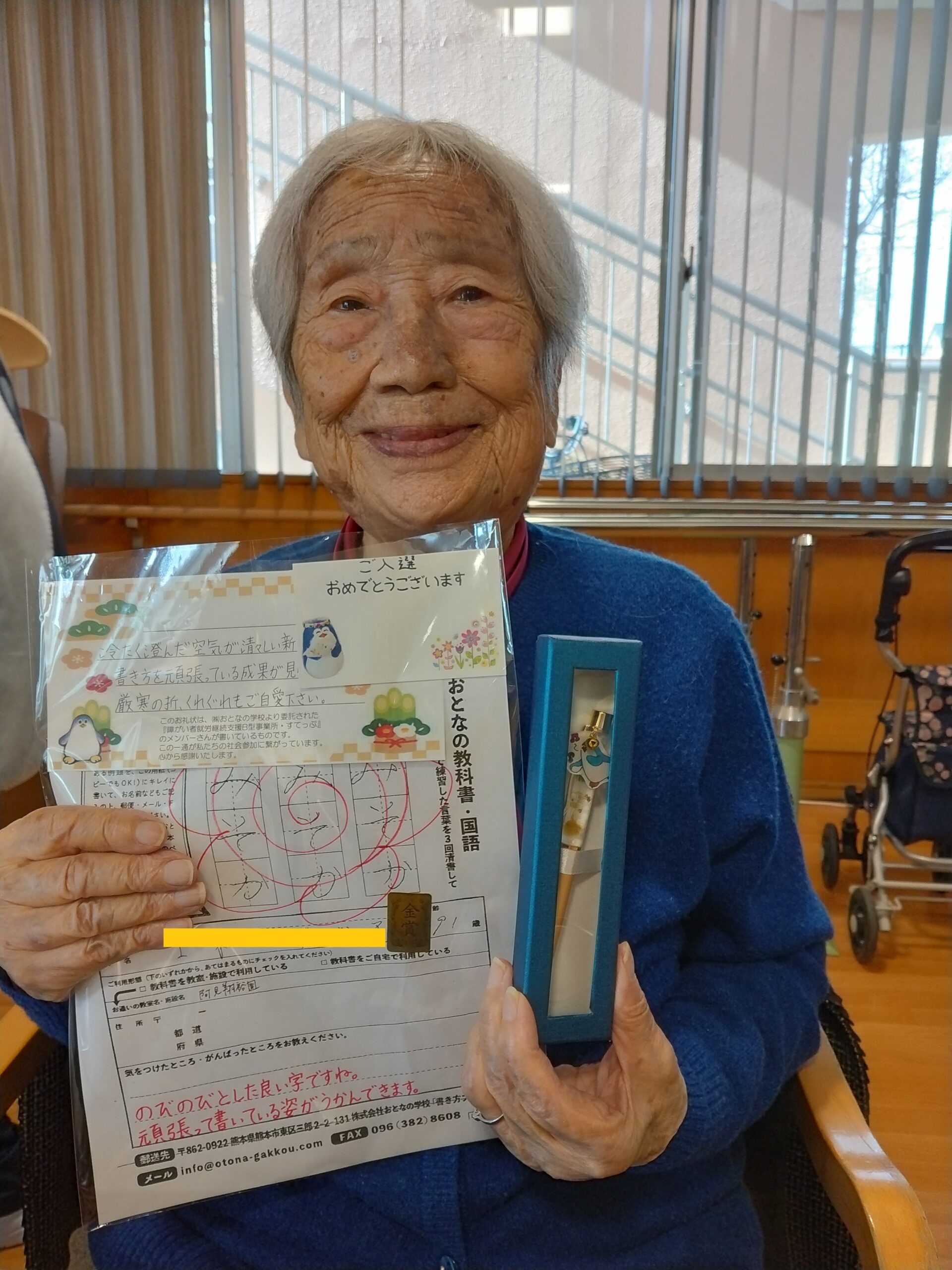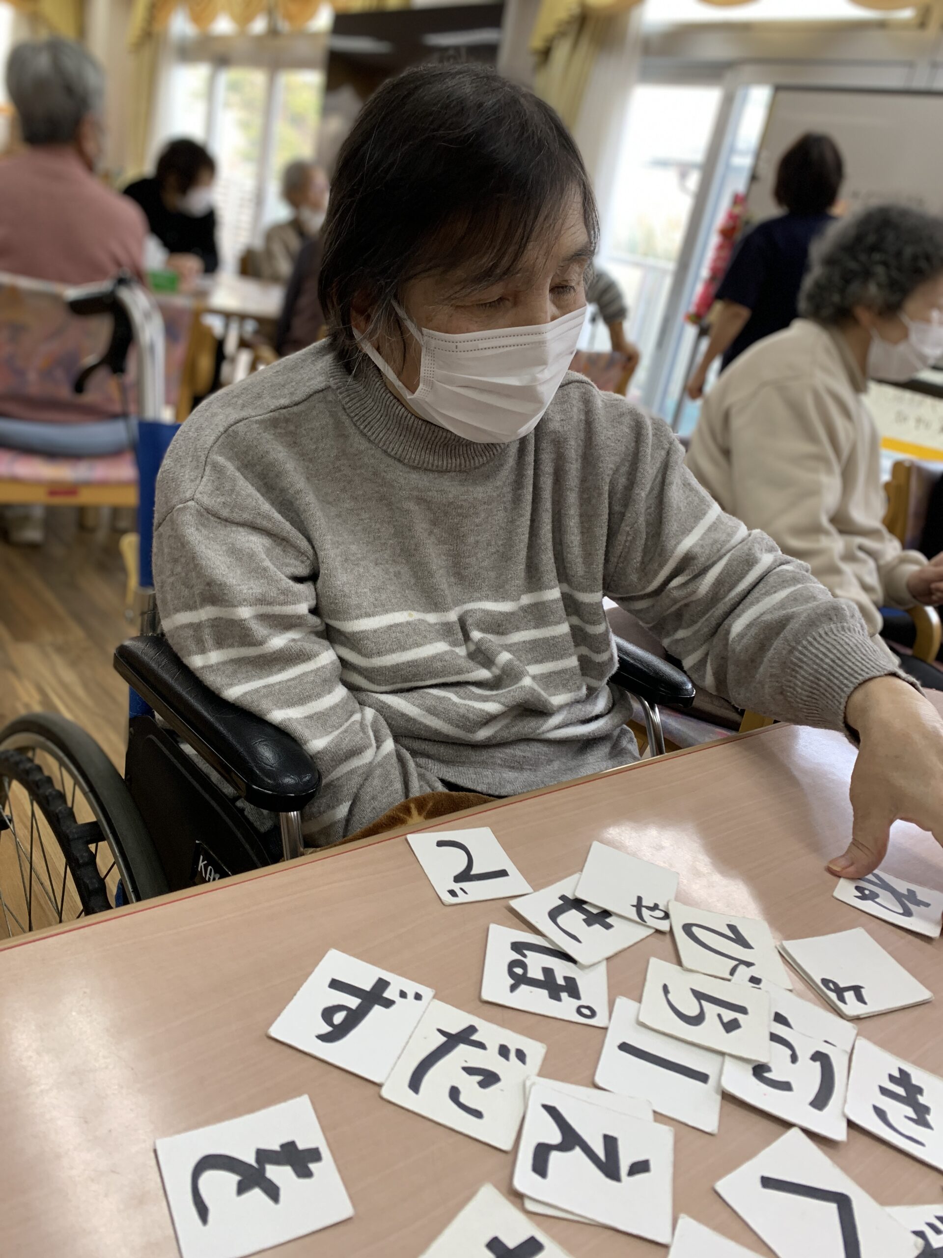 本日は、棒体操や書道、50音カルタでクイズなどなど身体と頭をバランスよく使う内容でした。アクティビティの合間にも、お話お楽しまれ、あちらこちらで笑い声があがっておりました。終始和やかな雰囲気の一日となりました。