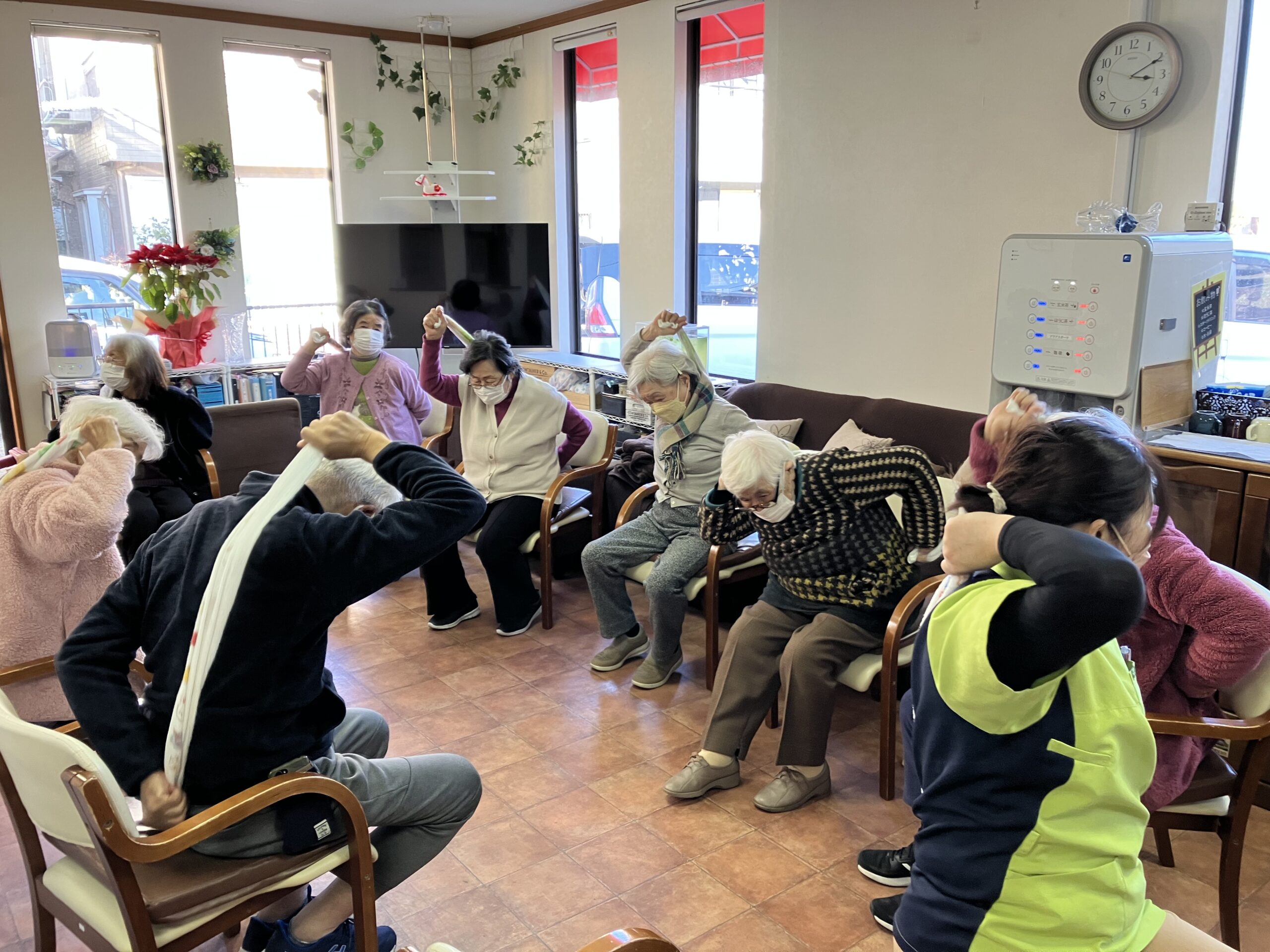 こんにちは、向日葵1.2番街です! 毎日寒くて、お外に出るにはもう少し先になりそうですね。 そんな中、ユニットで過ごしているお客さまのご様子をお届けします。 この日は、機能訓練士と一緒に将棋をさしたり、紙風船でどこまでラ […]