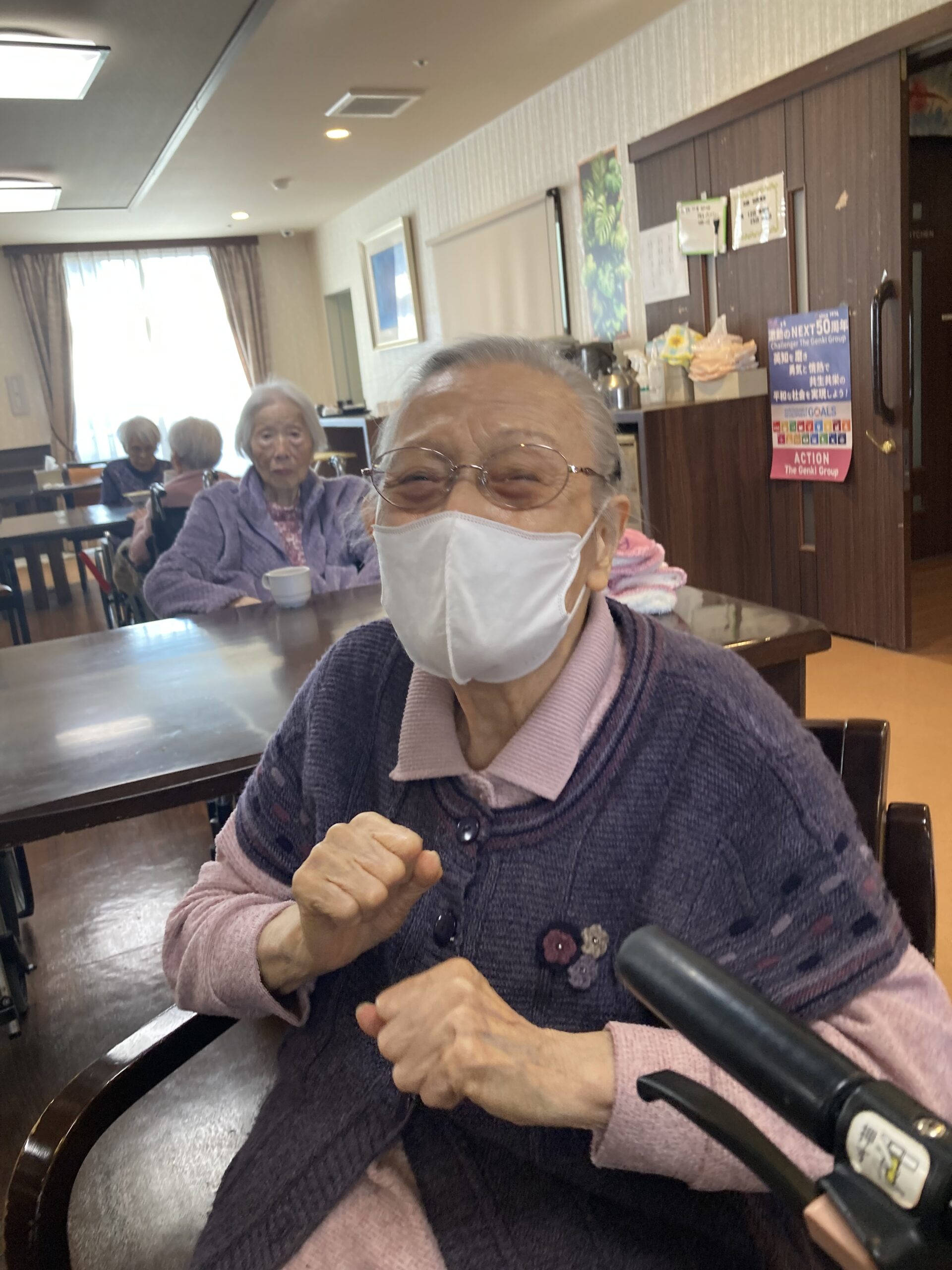 今日は朝から冷たい雨が降り寒い1日になりました。 本日のアクティビティは風船バレー🎈 皆さまで協力しながらラリーを続け、なんと100回達成!! チームワークの素晴らしさを感じ、一体感あふれる素敵な時間となりました😊