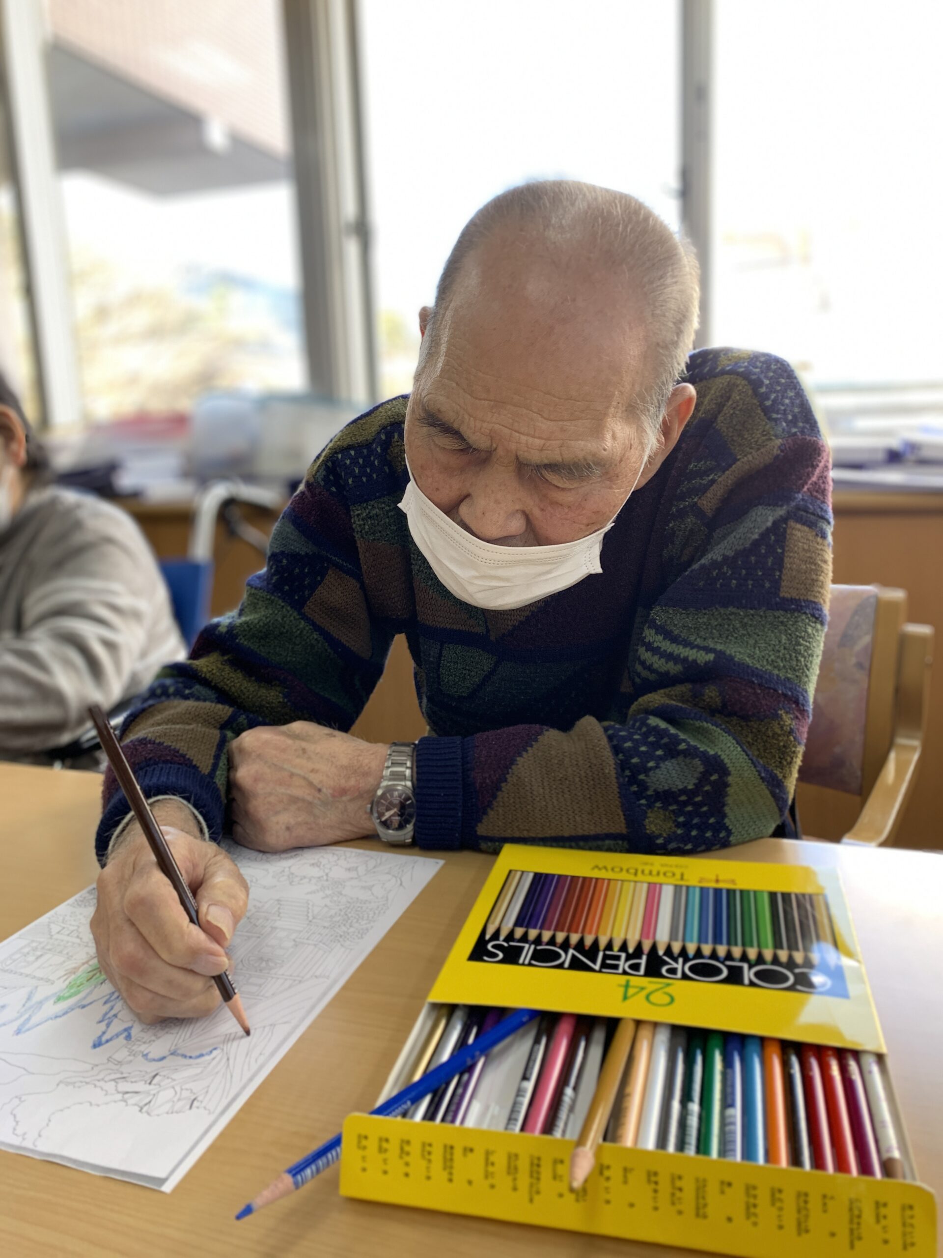 今日はコロリアージュを行いました。色の組み合わせなどで悩まれる方もいらっしゃいましたが、最後には皆さんで見せ合い「この色の組み合わせ綺麗」等お話にも花が咲きました。