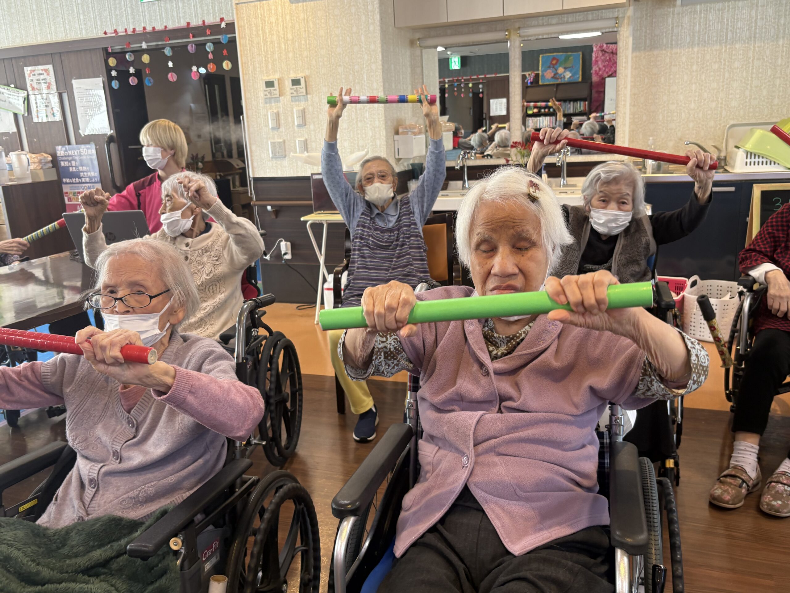 皆さま、こんにちは 桜が少しずつ咲き出しましたね♪ 今日のアクティビティは爽やかな風で人気の一つ マッスルブレインパワーです☆ 脳トレ、反射神経、グループで協力しながら体を動かすと 難易度高めですが皆さま白 […]