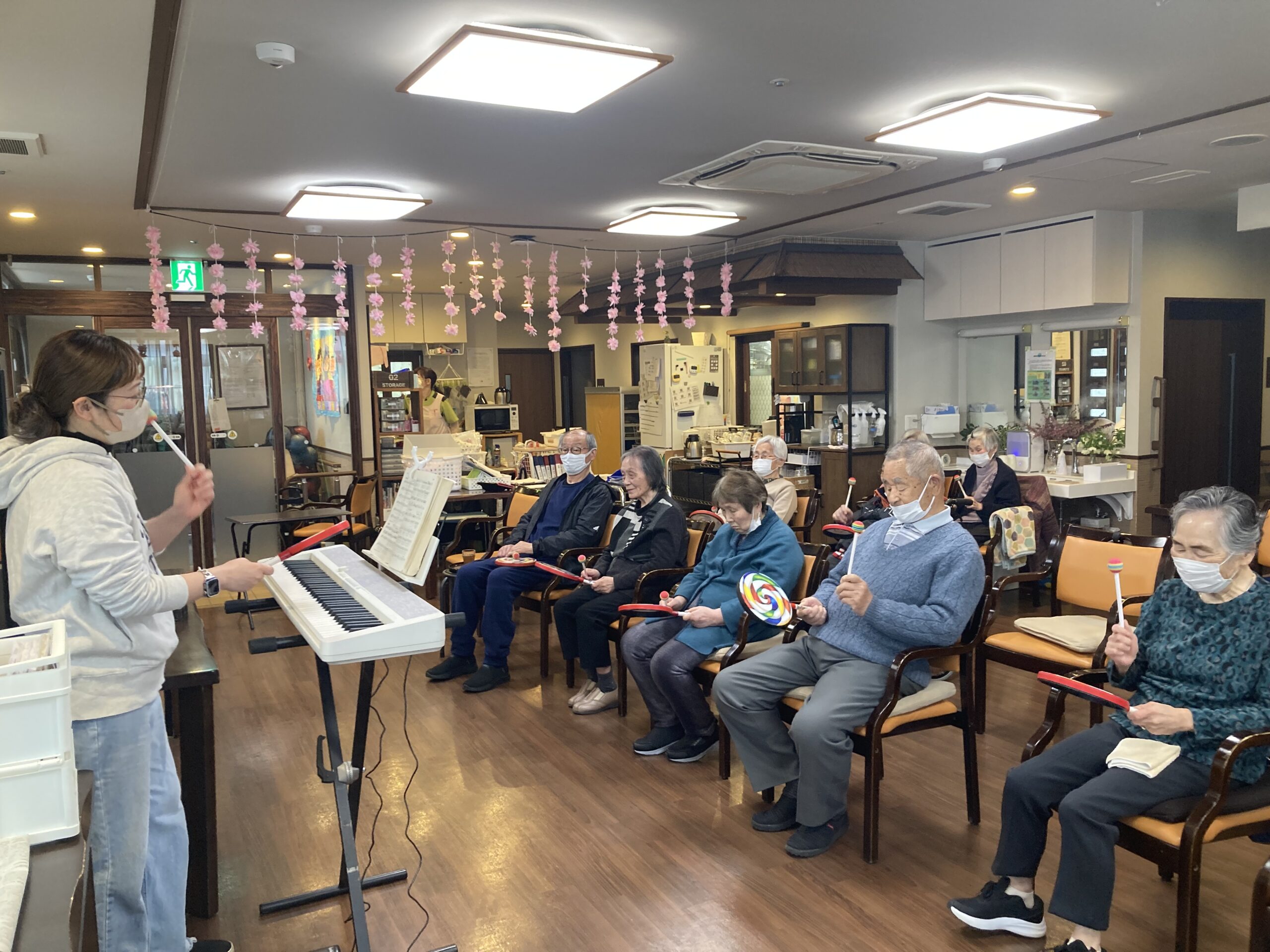 本日は月曜日恒例の音楽療法がありました🎵 さくらさくら🌸など春の歌を沢山 歌い楽しまれました🎤 お昼にはお天気も回復し、ゆっくり外お散歩されたり、春の室内飾付けの制作をしました☘️