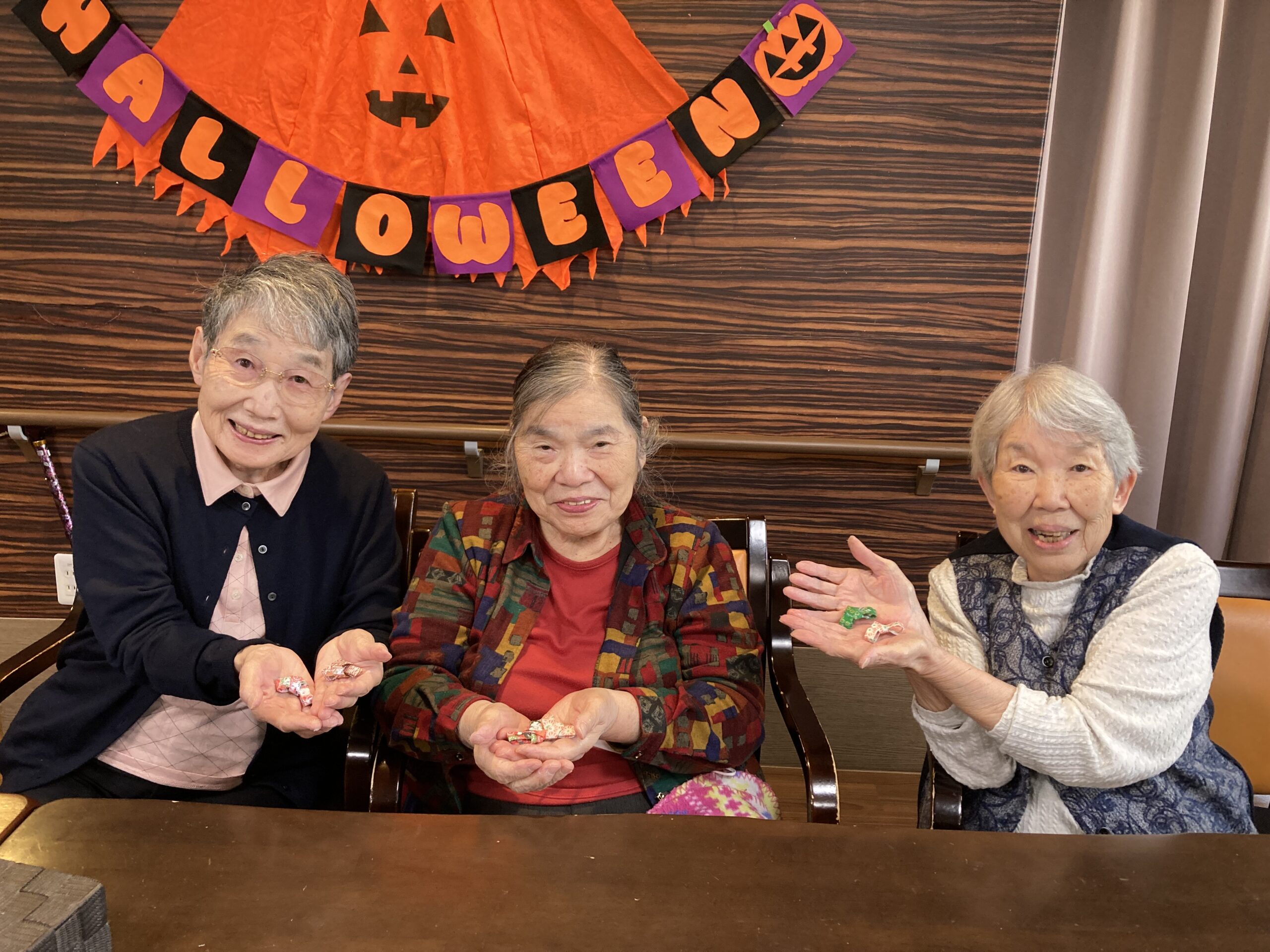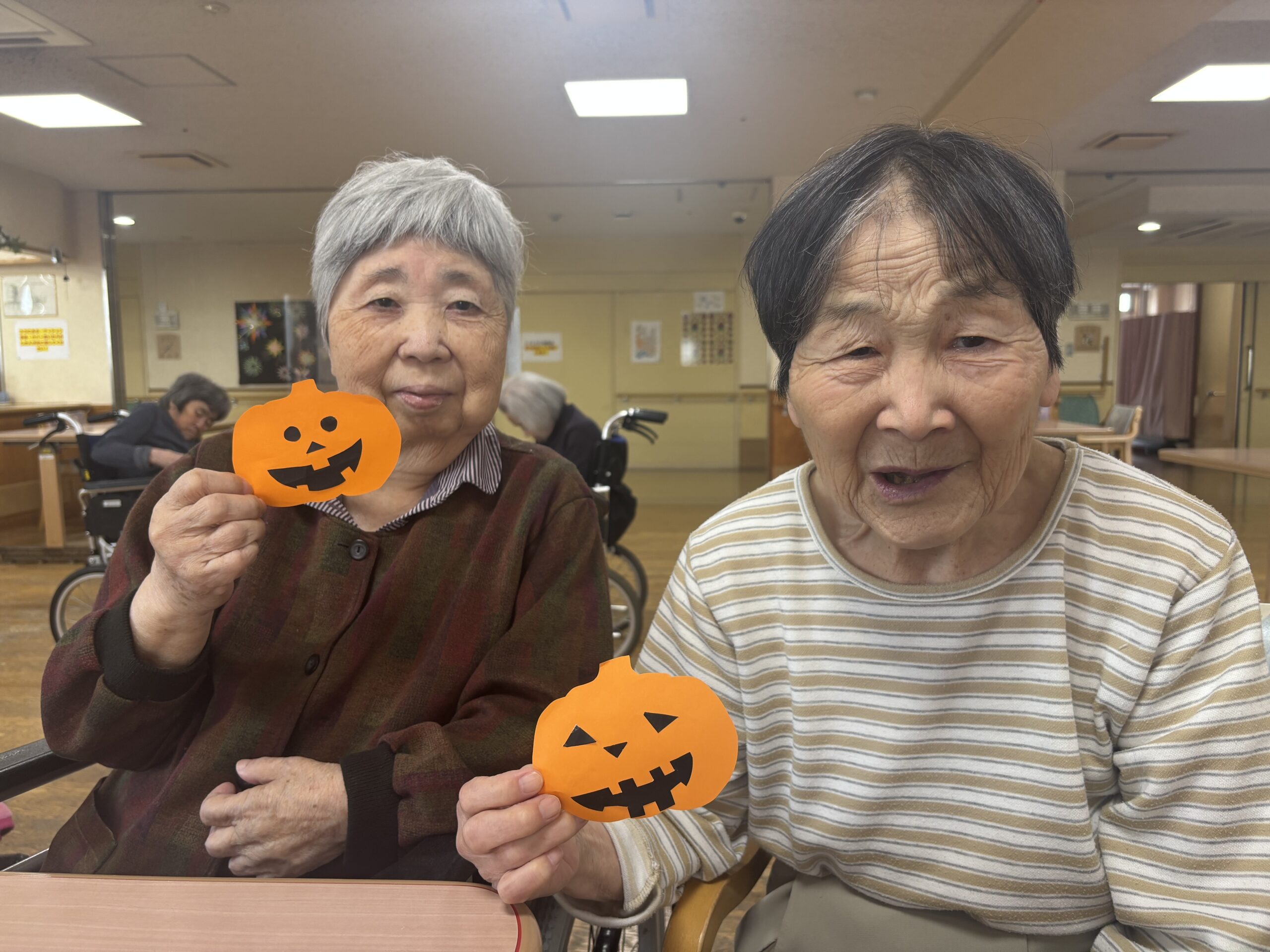 本館2階では、前回のコスモスの装飾に続きハロウィンの装飾を制作中…✨ かぼちゃのオバケから色とりどりなオバケまで、描いては貼って、皆さんそれぞれ個性的な飾りを作っています。