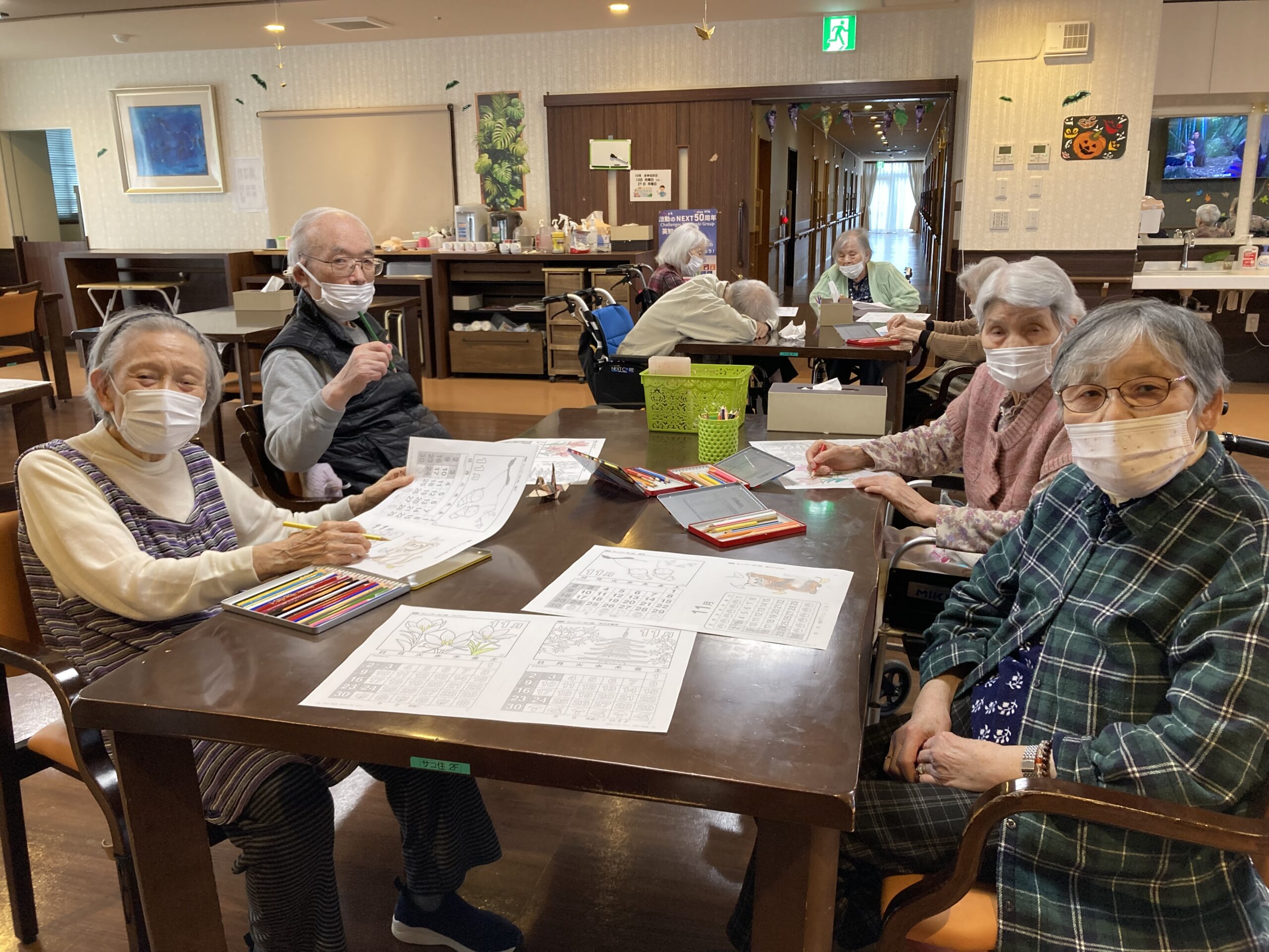 本日は久しぶりにお天気も良く気持ちの良い1日でしたね☀️ 午前元気に体操を行いました🤗 午後は来月のカレンダーの色塗りをしました✏️ 紅葉もキレイに色がつき素敵な塗り絵が出来上がりました😊