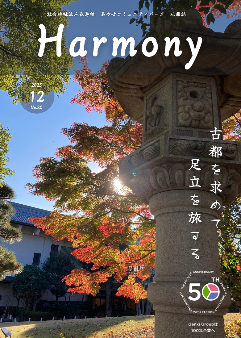12月号『Harmony』発行のお知らせ 社会福祉法人長寿村が発行する広報誌『Harmony』12月号では、秋の彩りを楽しむ活動や文化祭の様子をご紹介しています。今回のテーマは「古都を求めて、足立を旅する」。紅葉に包まれ […]