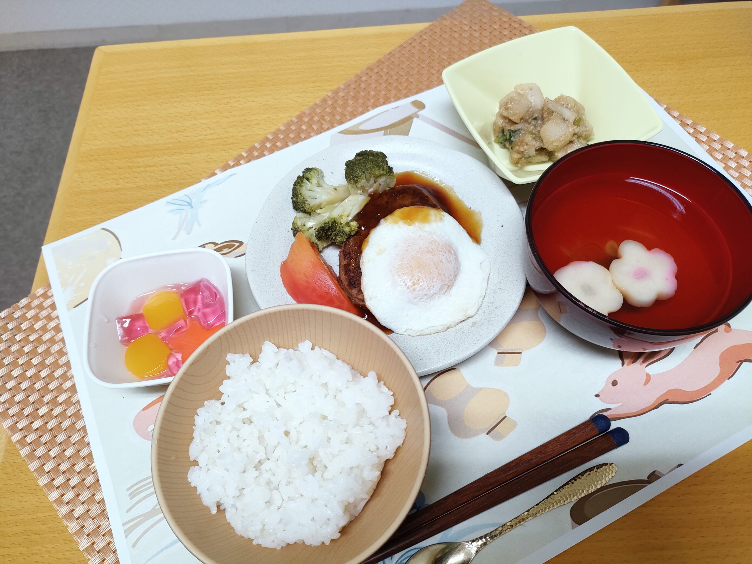 こんにちは!栄養部門です。 本日10月6日は中秋の名月ですね。 昼食にはお月見をイメージしたお食事をご用意しましたよ♪ 【献立】 ・ご飯 ・ハンバーグ目玉焼きのせ ・グリーンサラダ ・オニオンスープ ・お月 […]
