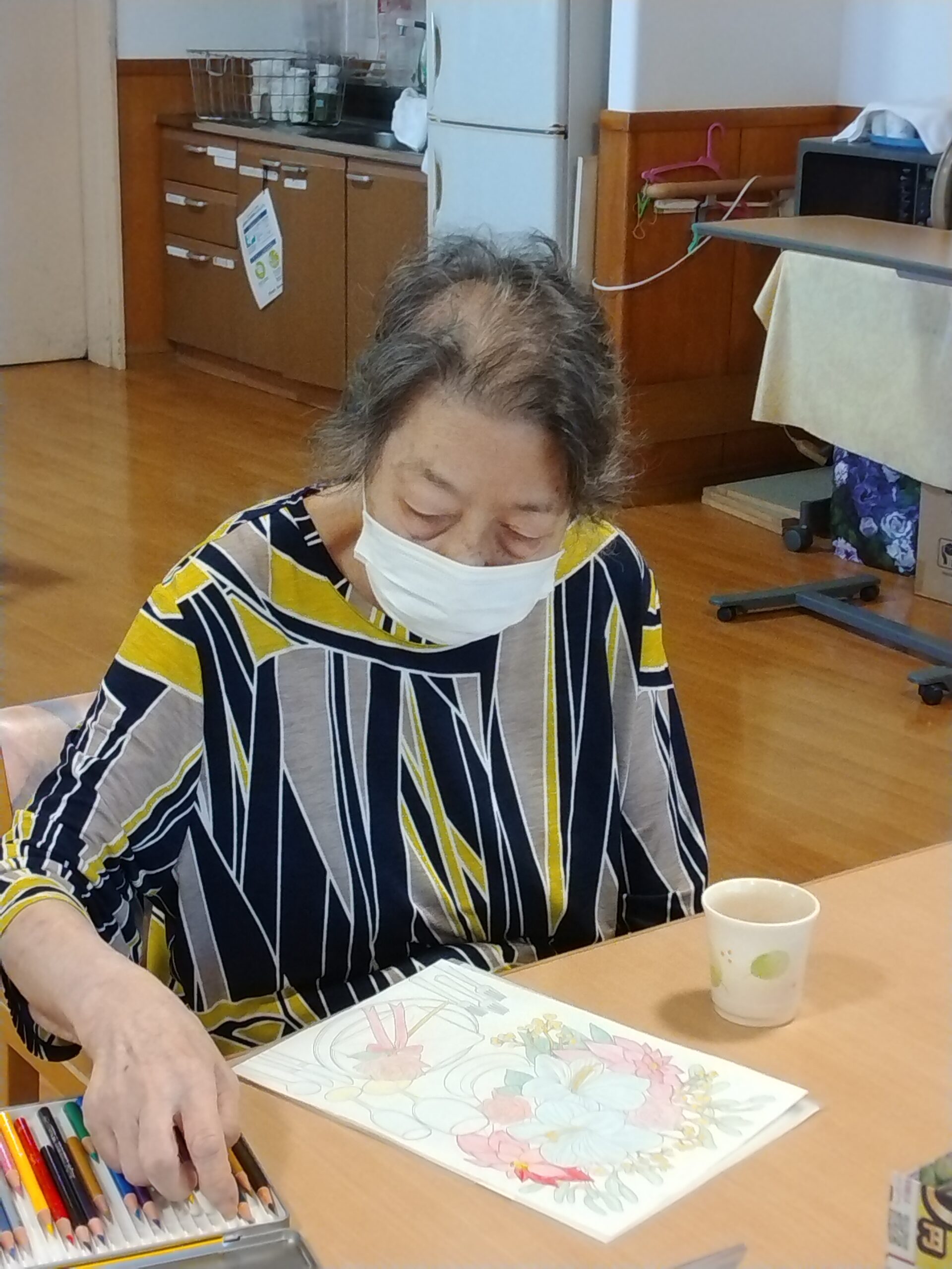 本日、デイサービスではお馴染みの塗り絵を行いました!(^^)! 塗り絵を行うとリラックスができて脳の活性化などに効果があると されています。 塗り絵が苦手な方も参加しチャレンジしましょう(#^.^#)