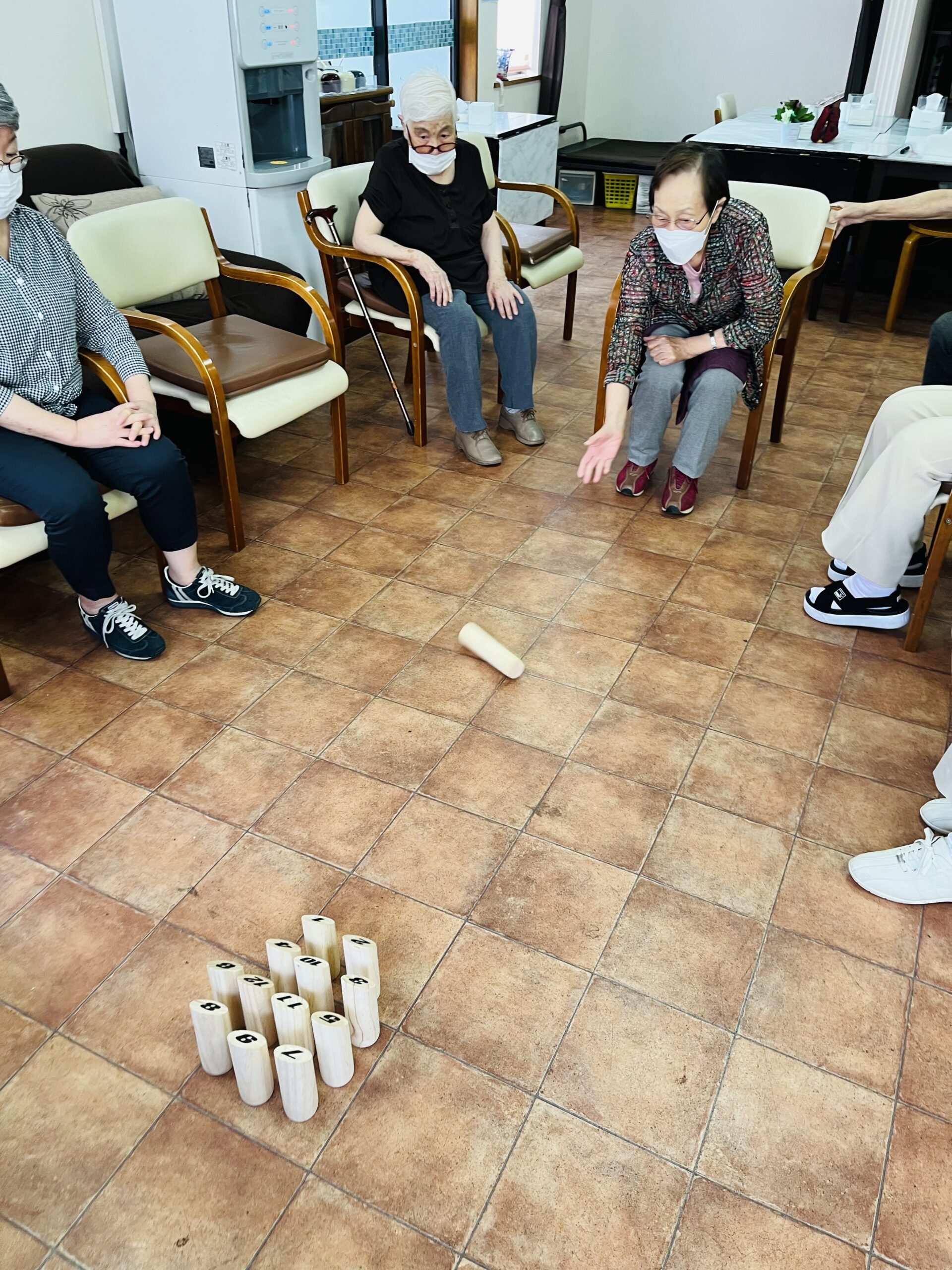 皆様 こんにちは♪ 朝はひんやりと、日中も25℃と 過ごしやすくなってきましたが 体操で体を動かすと暑く 汗を流しながら頑張りました! 今日のアクティビティは「モルック」 フィン […]
