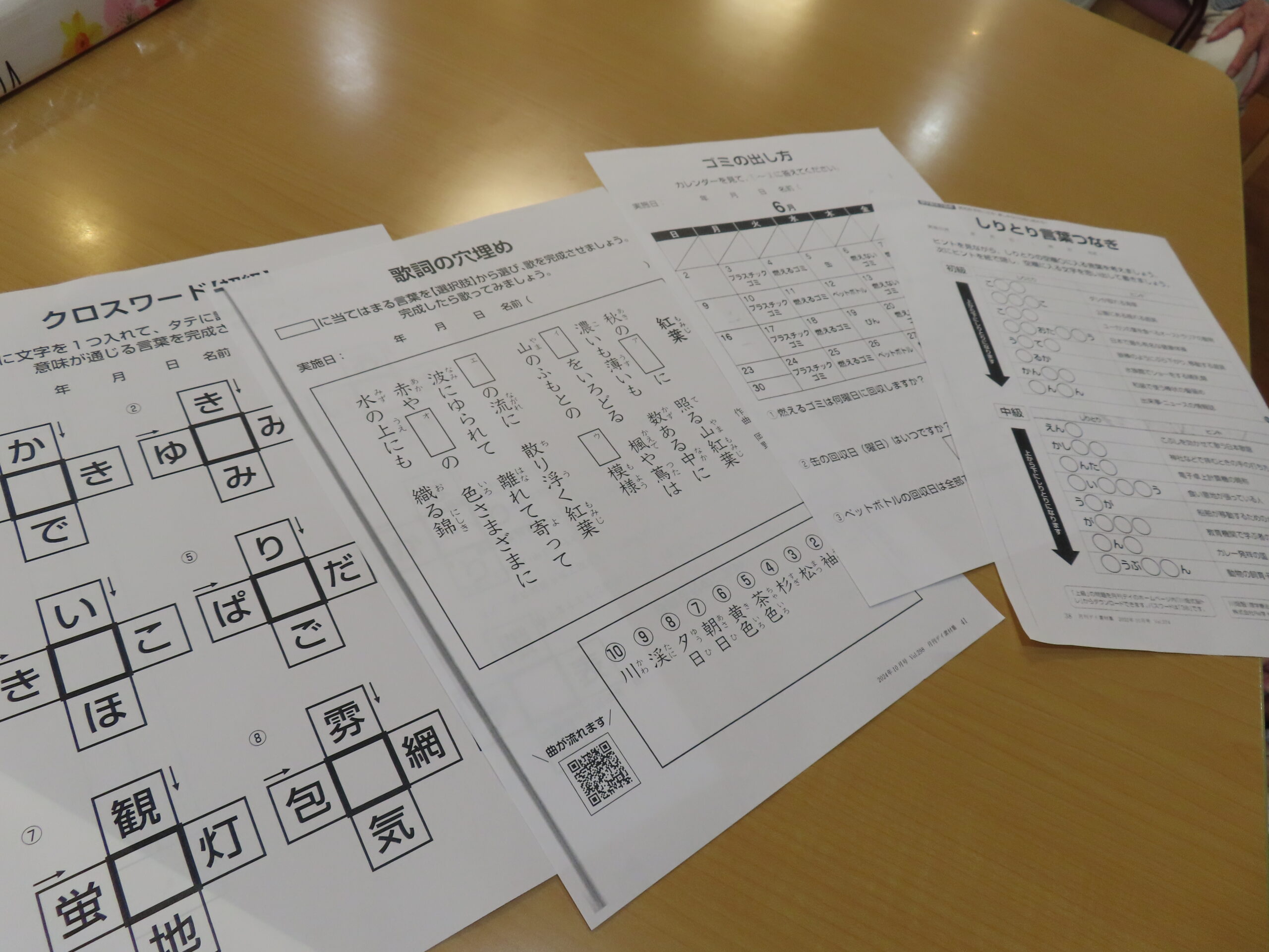 こんにちは、今朝は少し涼しく感じましたがいかがでしたか? 昼間はまだまだ暑く気温も上がり厳しい日が続きそうです。 本日は脳トレプリントに取り組みました。4枚配布しましたが皆様黙々と取り組まれています。 唱歌の穴埋め問題で […]