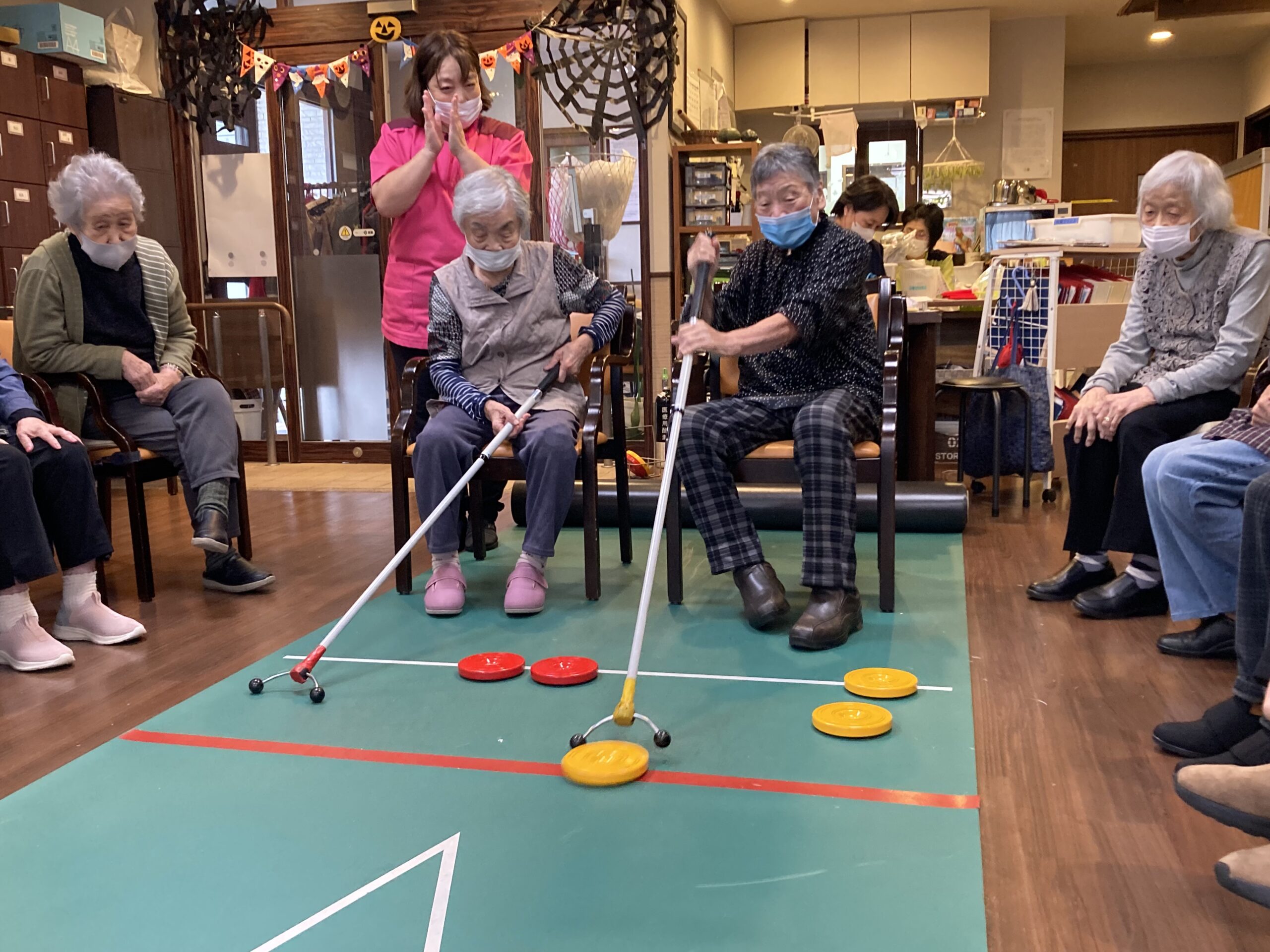 本日のクラブ活動ではカーリングを行いました。 1回目は力の加減がわからずに、思い通りにいきませんでしたが2回戦目には高得点がたくさん出ました! 久しぶりで、とても楽しんでいただけました♪