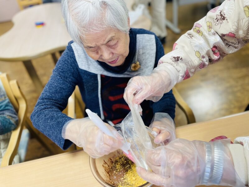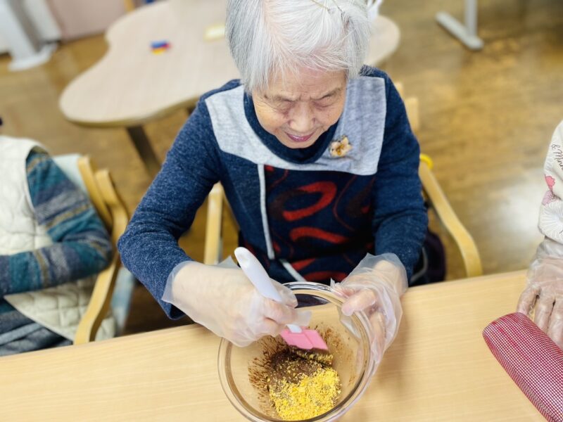 今日は利用者さんと一緒に手作りチョコクランチを作りました( *´艸`)」