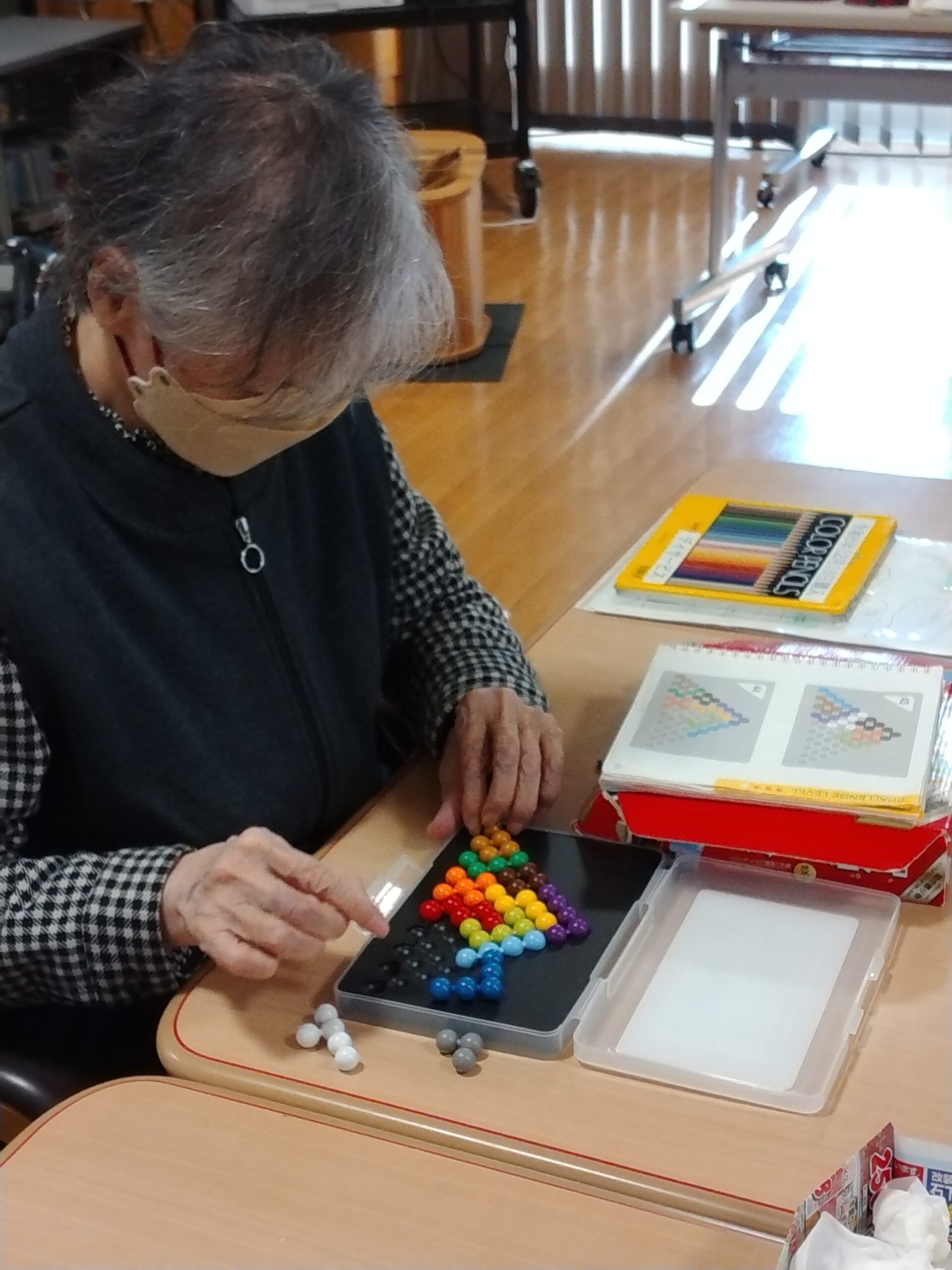 本日、デイサービスではカラフルな知能ビーズを行いました(*’▽’) デイサービスでは恒例ですが、色と形の違うブロックビーズを組み合わせて 問題を解いて行きます。 まだ、挑戦して[...]