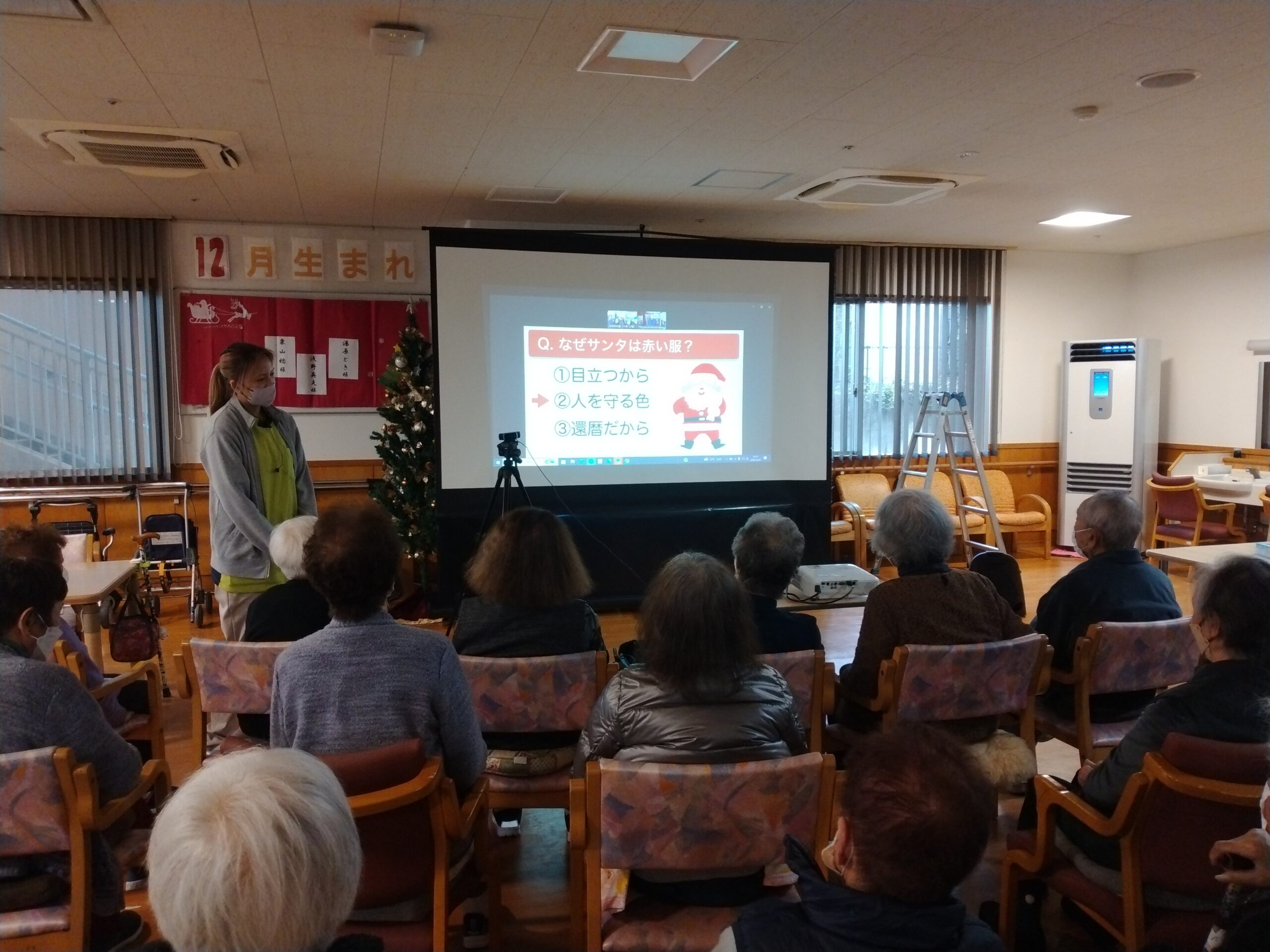 本日、デイサービスでは音楽療法を実施しました🎵 25日はクリスマスということでクリスマスの曲を歌い、クリスマスにまつわるクイズを出題しました。 いつの時代でもクリスマスの曲は名曲ですね(^_-)-☆[...]
