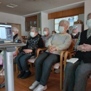 途中で、フリートークがあったり、「みかんの花」歌いながら体操などもありお客様も一緒に参加しました♬最後は、お客様も一緒に合唱しました♪♪