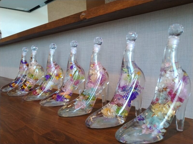今日は。ドライフラワーを使い、ハーバリウムをしてみました♪瓶をハイヒールにして、自宅でも飾れる物にしました❤