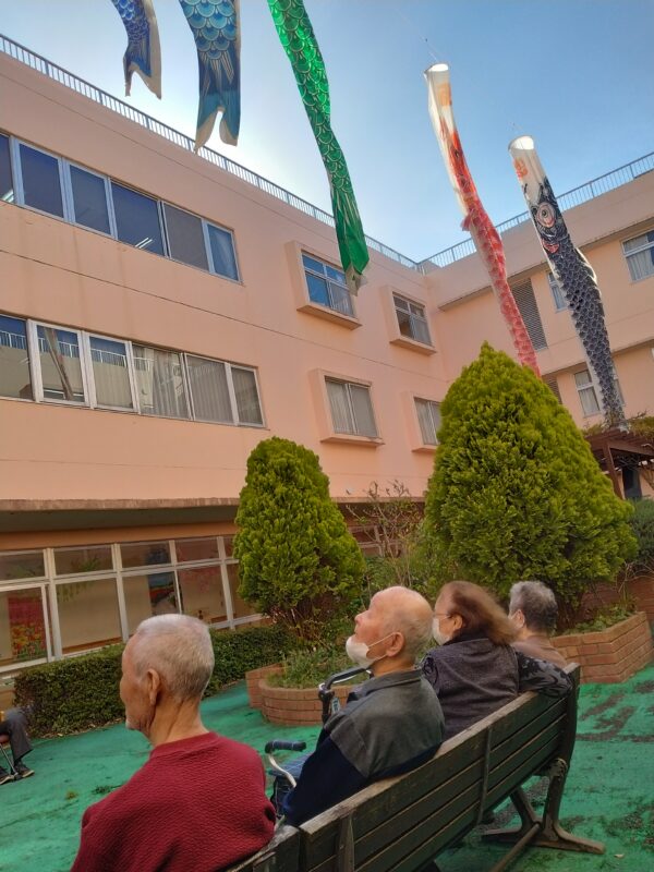 天気がよく暖かかったので庭に出て鯉のぼり鑑賞を行いました🎏