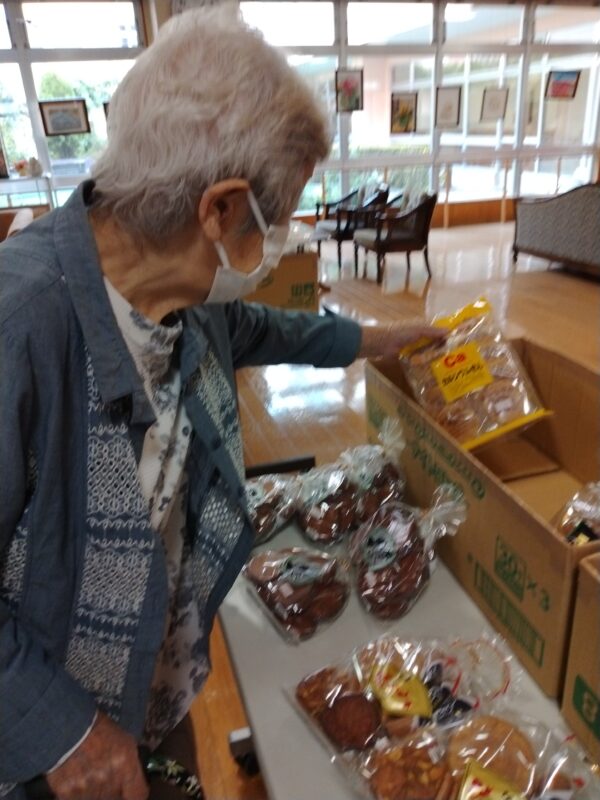 2025.10.21売店(デイサービス) 本日は月1回の売店販売でした!! お菓子や甘い物、ご飯のおかずになる商品まで揃っており 皆様「どれにしようかな?」など悩みながらお買い物を 楽しまれていました😊
