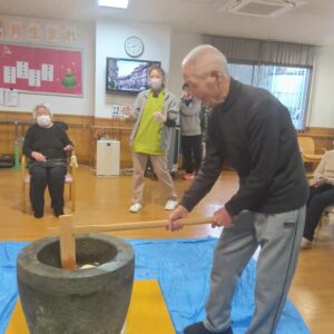 本日、デイサービスでは鏡餅を作るための餅つきを行いました😀