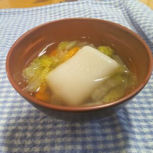 おやつには、少し早いですが皆さんでお雑煮をいただきました😊
