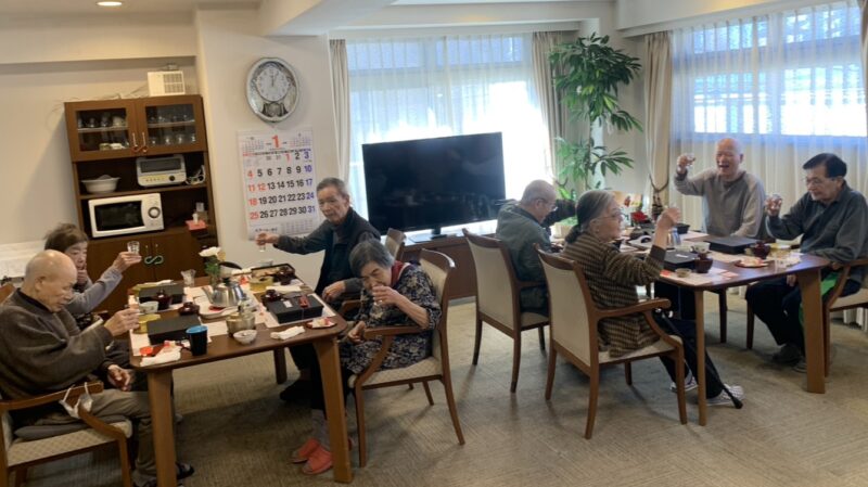茂ホームは毎年恒例のお屠蘇代わりの日本酒で乾杯