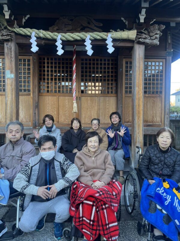 鈴の音が響く中、ゆっくりとお賽銭を入れ、手を合わせる利用者さんの表情はとても真剣で、「今年も元気に過ごせますように」「家族が幸せでありますように」と、それぞれの想いが静かに伝わってくるようでした。職員も一緒に並び、同じ時間を共有できることのありがたさを改めて感じました。