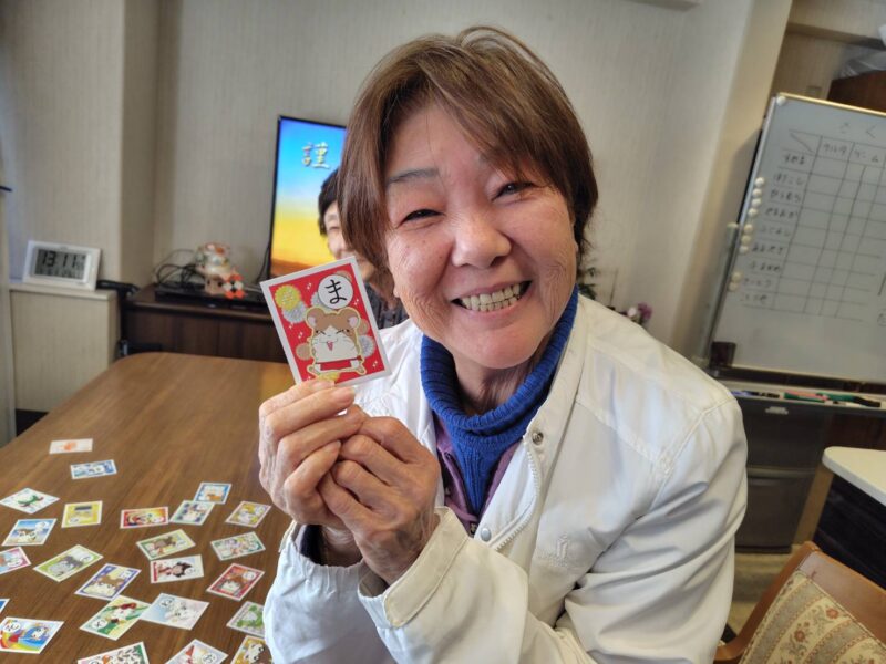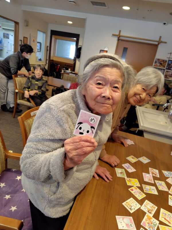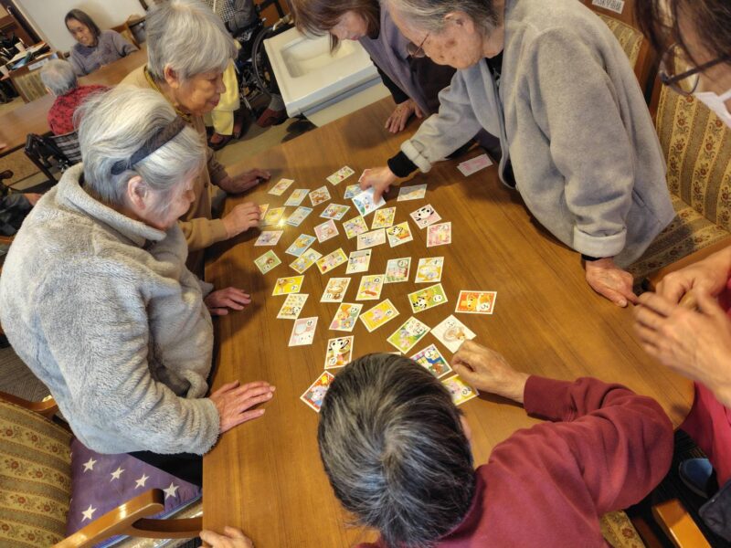 「これだったかしら?」「あ、見つけた!」と、自然と笑い声が広がります。勝ち負けよりも、カードを目で追い、手を伸ばし、周りの方とやりとりする時間そのものが、いきいきとした表情につながっているように感じました。