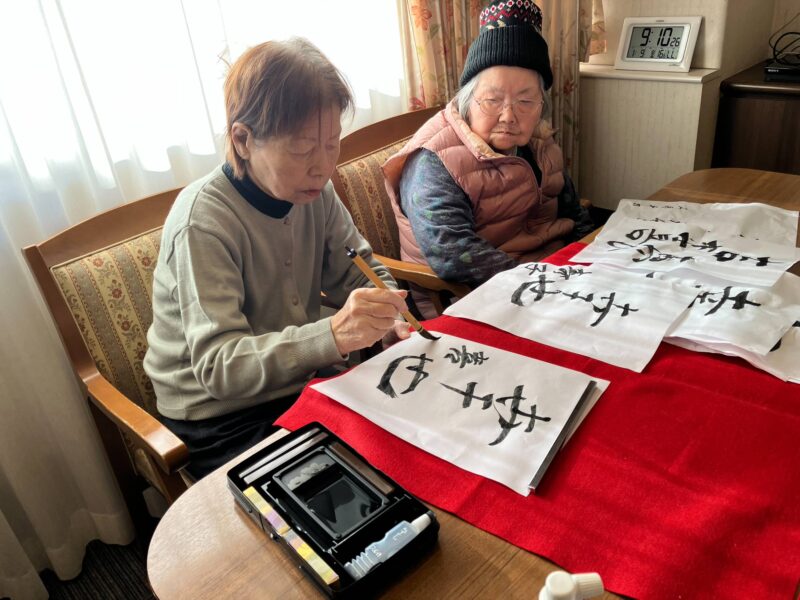 「やっぱりお正月はこれだね」と、いつもより少し箸が進む方もいらっしゃいました。慣れ親しんだ味や行事は、認知症があっても心に残りやすく、その人らしさを引き出してくれます。書初めの時間には、筆を持つ手に自然と力が入り、真剣な表情に。