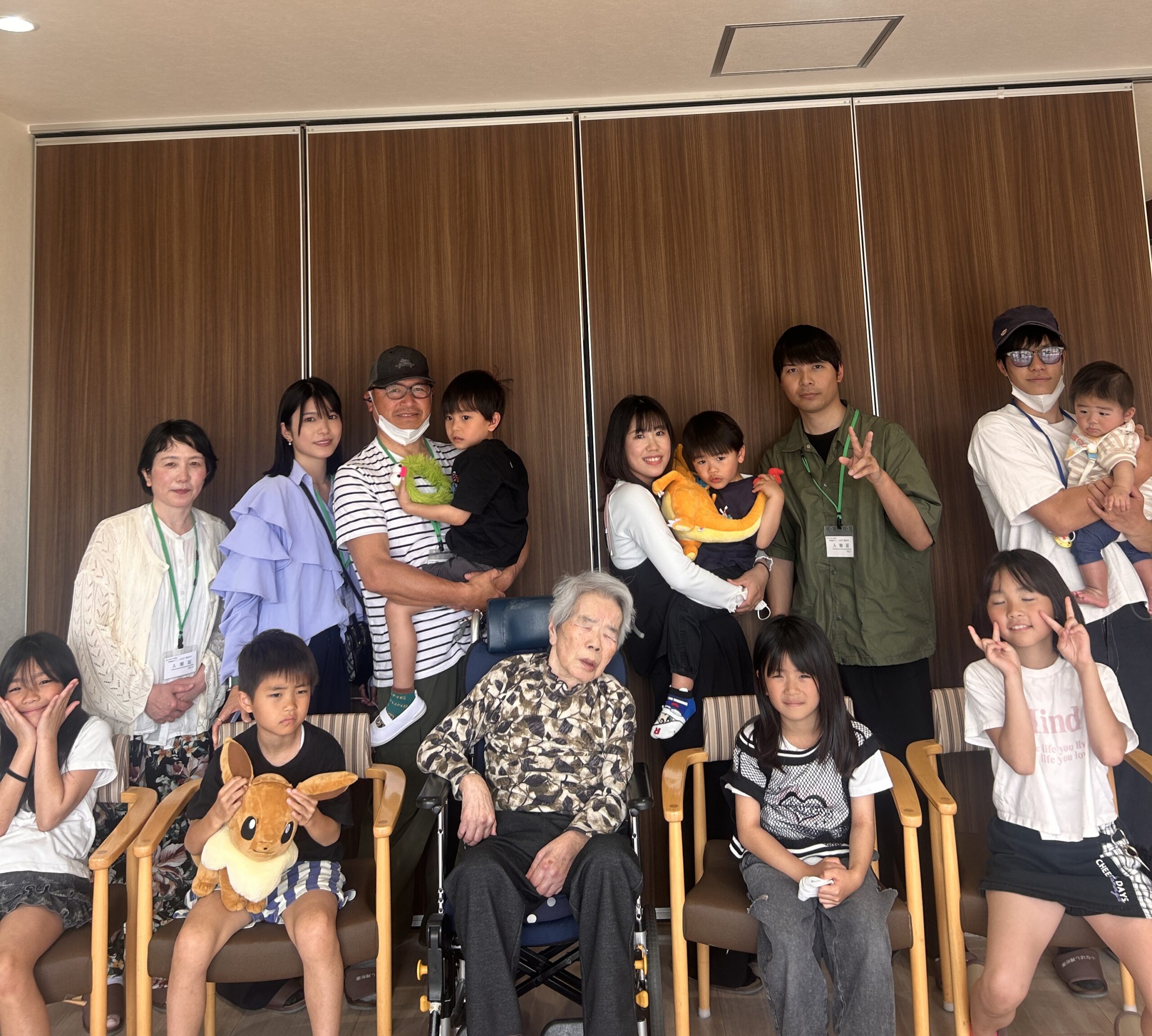 お孫様、ひ孫様に囲まれ、自然と笑い声に包まれ、にぎやかでやさしい空気が流れておりました。