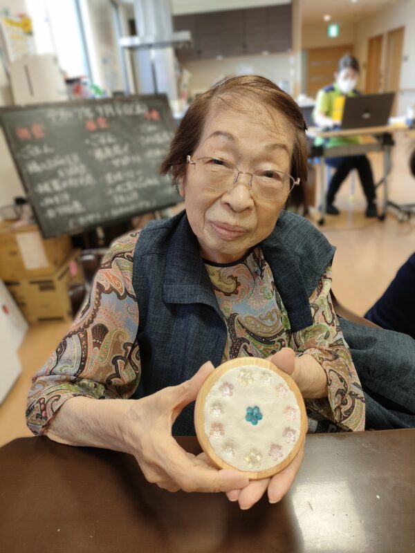 身に着けているお洋服と少し色合いが似ている感じがします。皆様それぞれ素敵なコースターが出来上がりました。