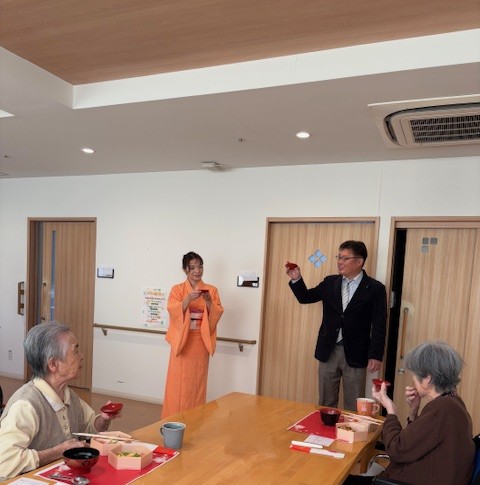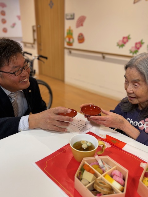 施設長より新年のご挨拶と一年のご多幸をお祈りし乾杯をさせて頂きました。