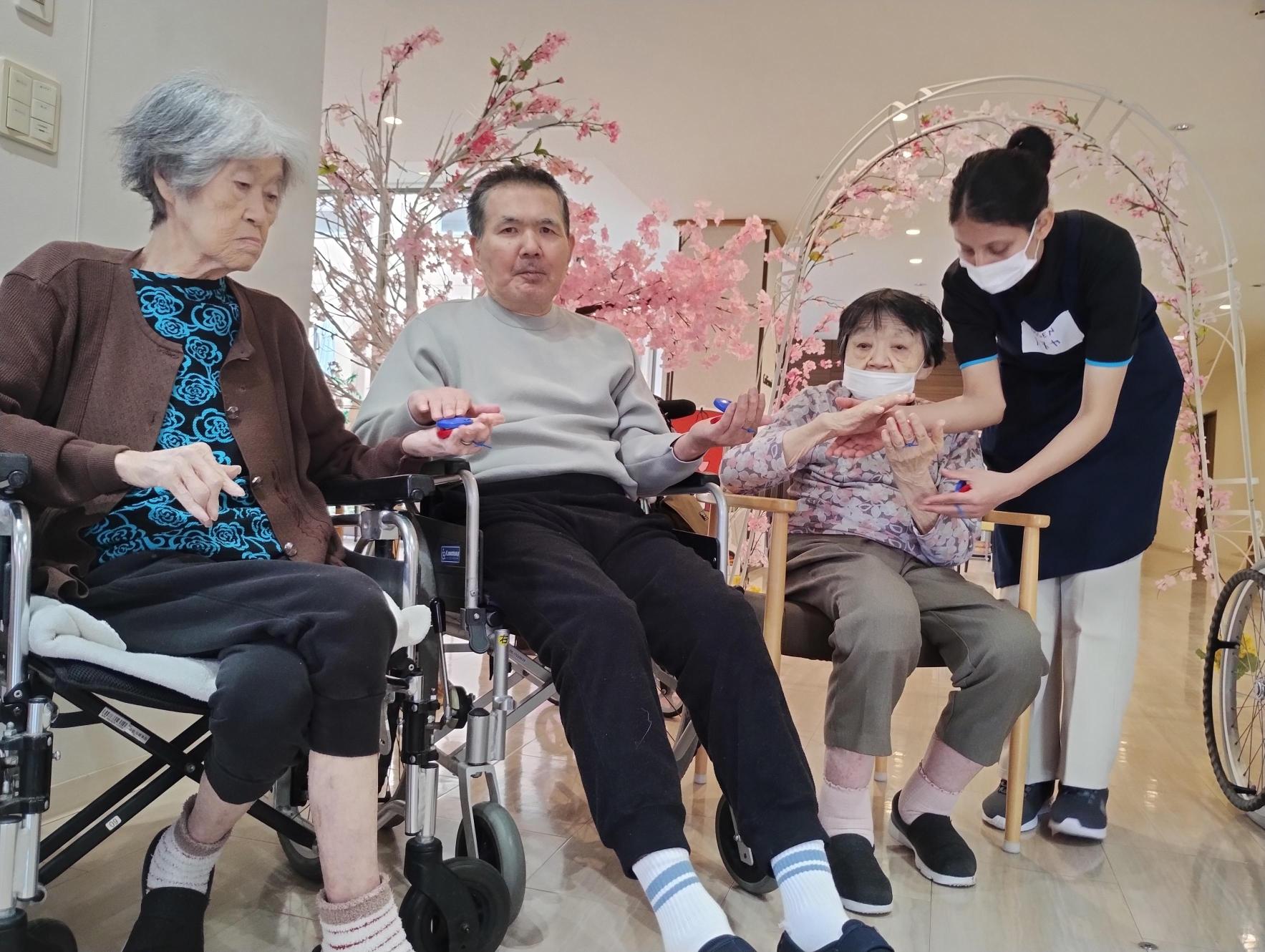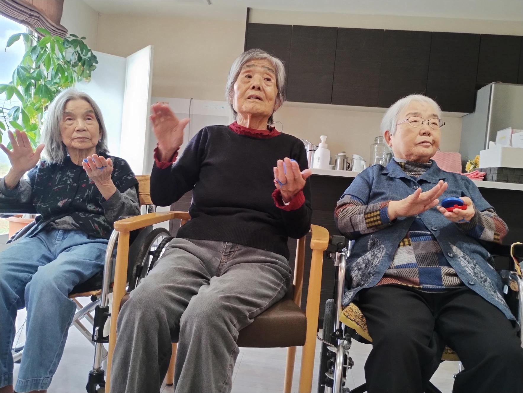 体操に合わせて鳴らす鈴や小物も大好評で、皆さまリズムに合わせてしっかりと腕を伸ばしたり、手を動かしたりと積極的に参加されていました。