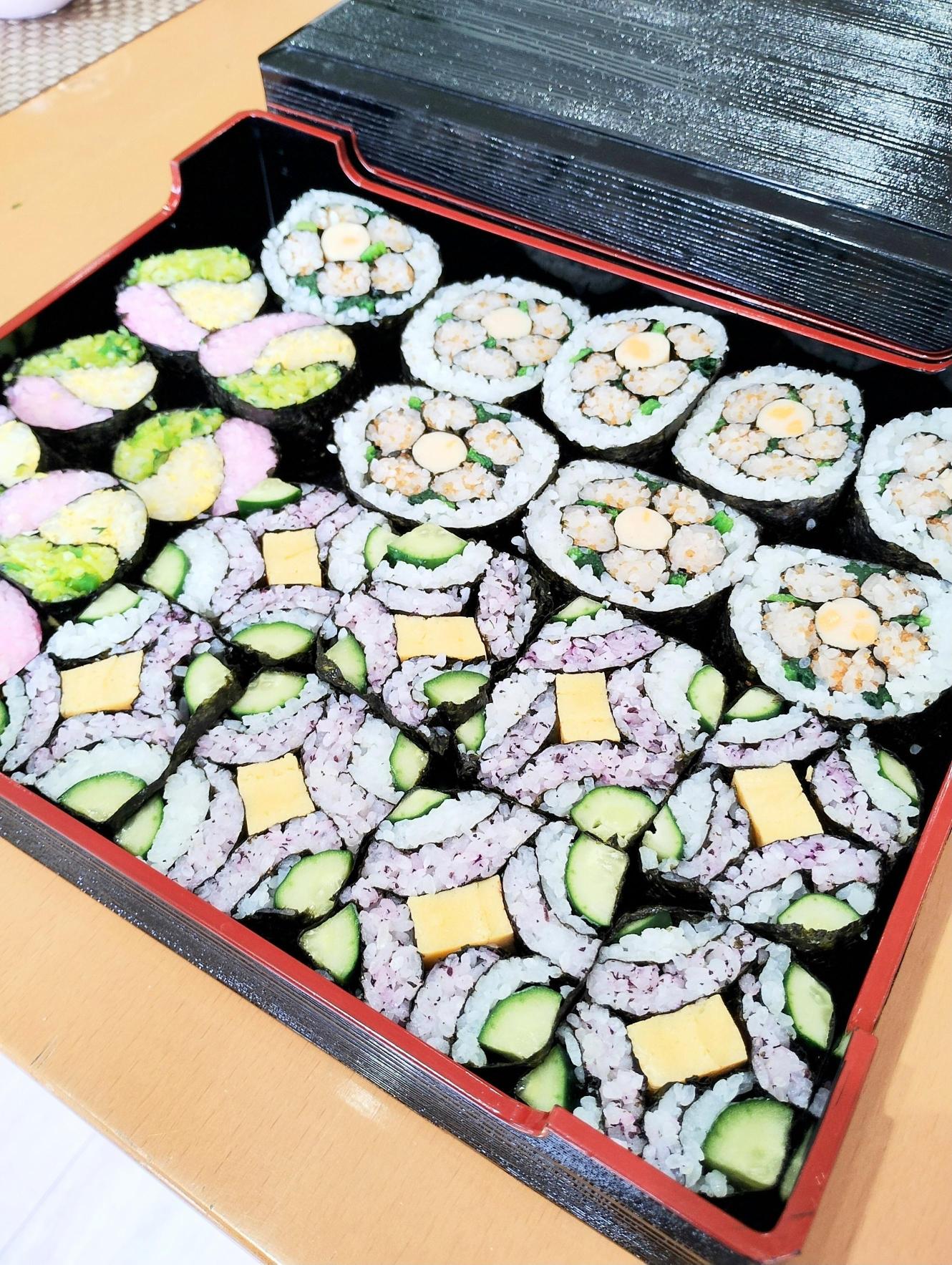 本日は、千葉県の郷土料理である「太巻き祭りずし(飾り巻き寿司)」を3種類作りました。