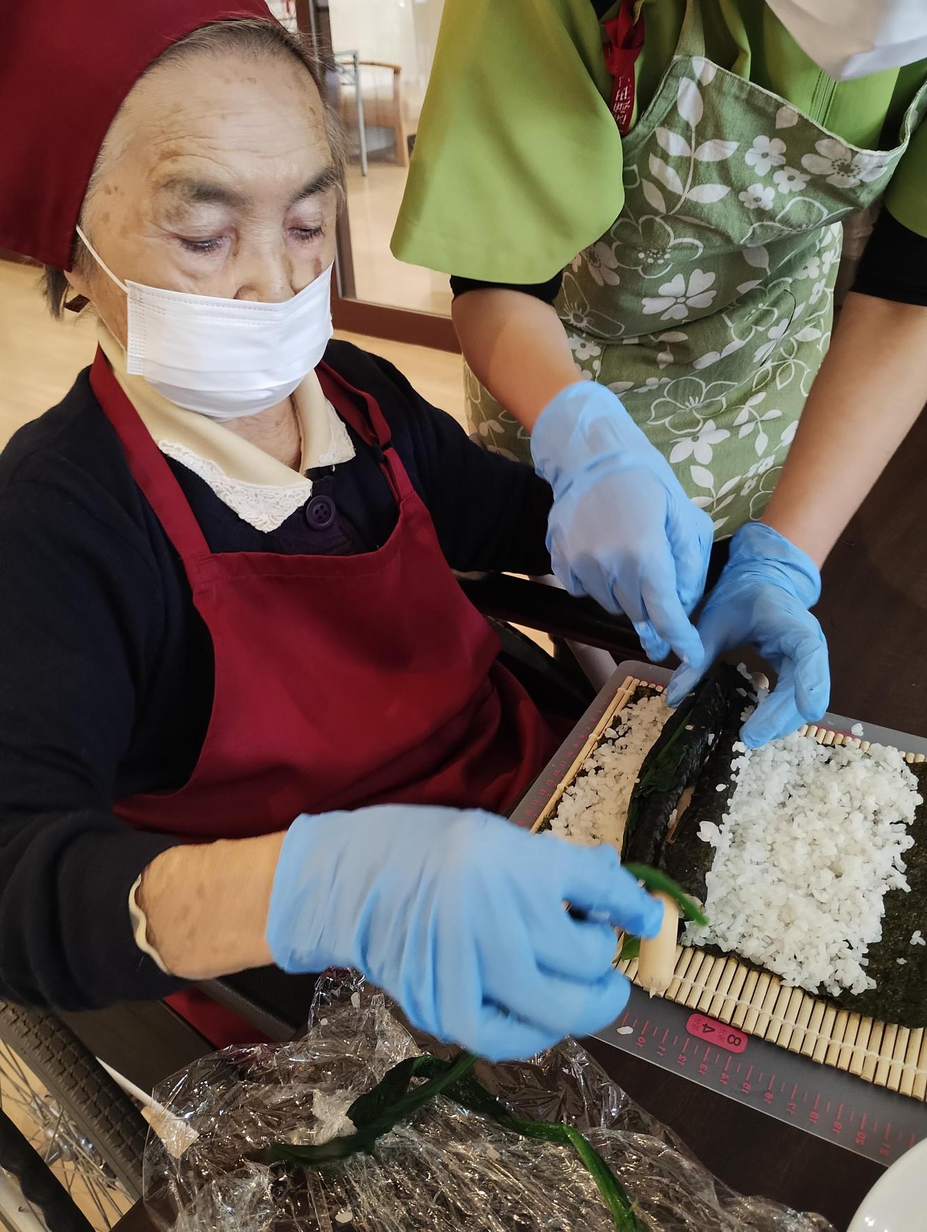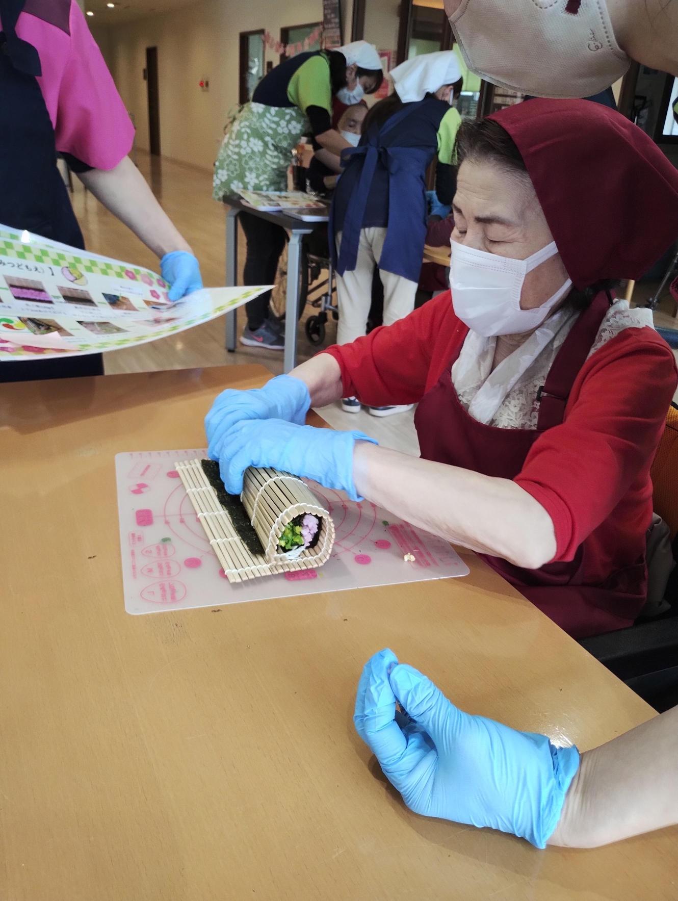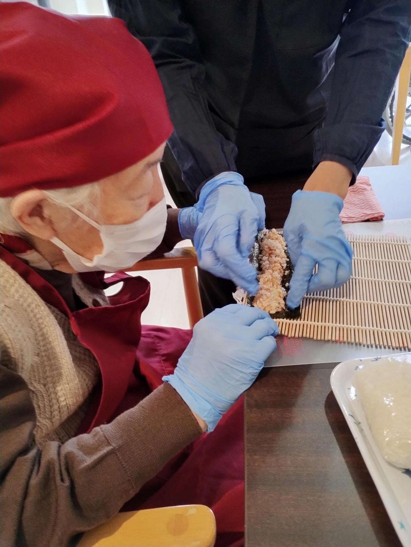 バラバラにならないよう慎重に太巻きにしていきます。