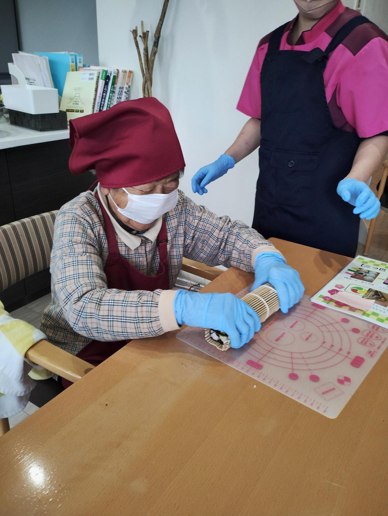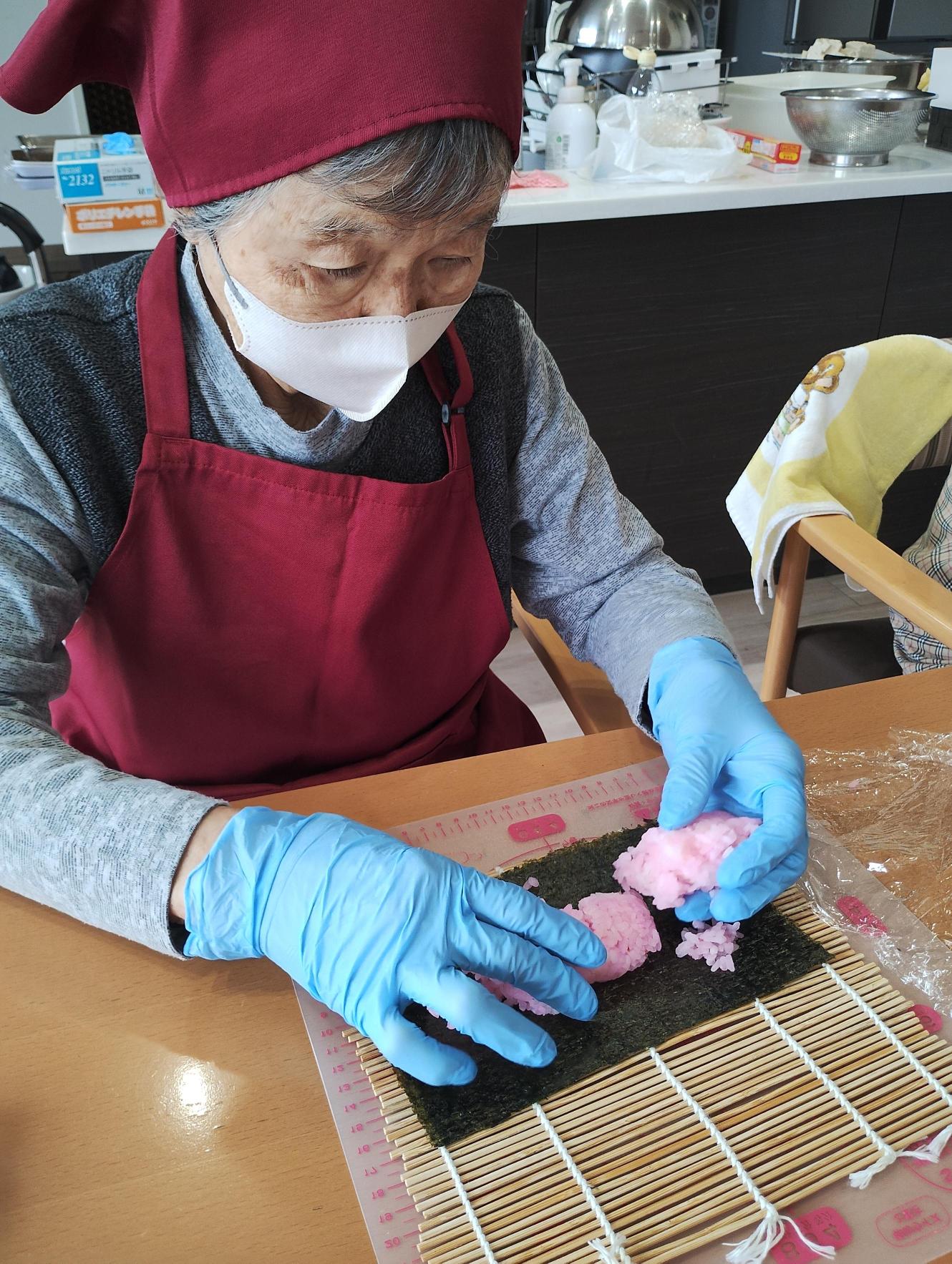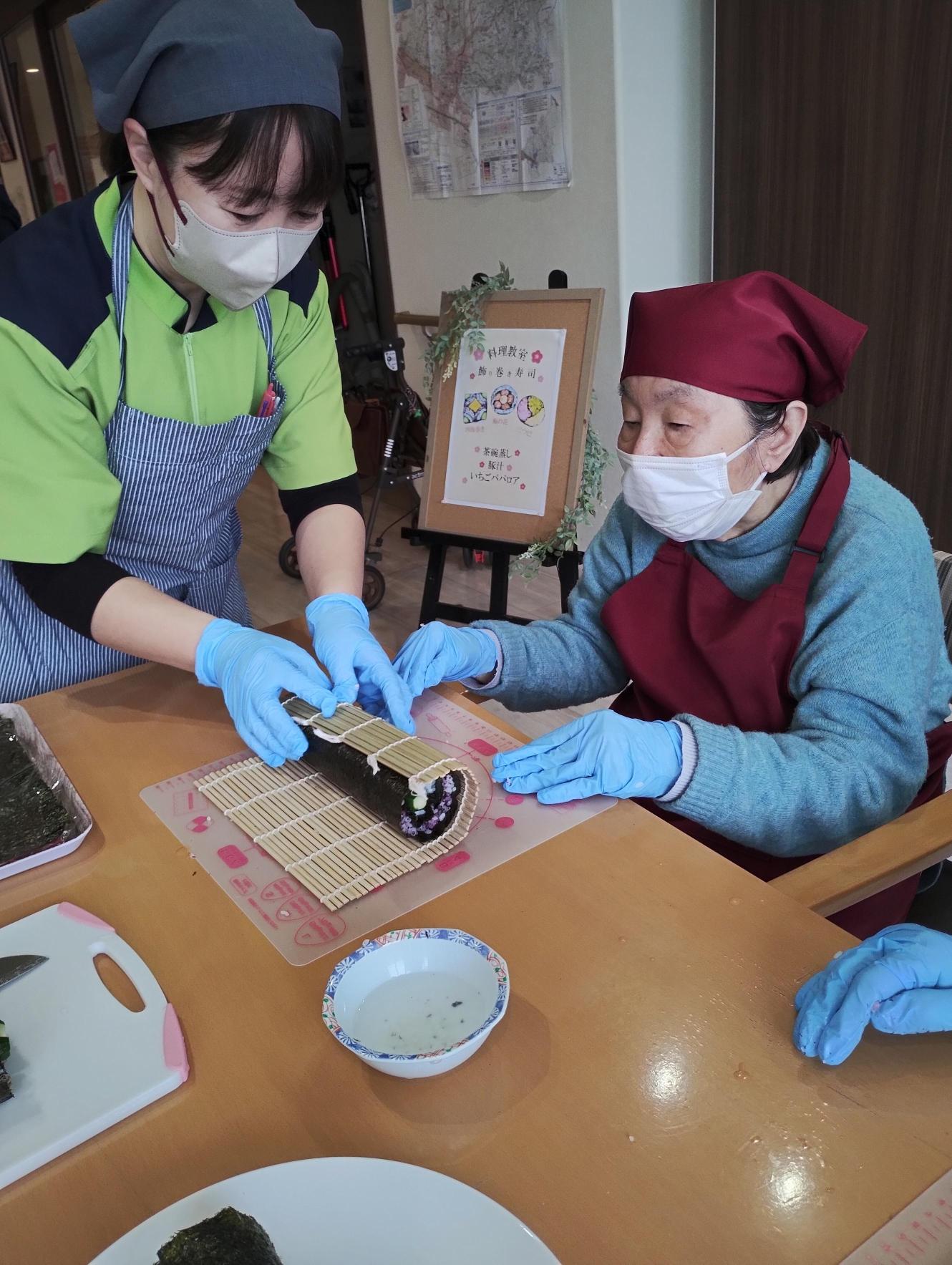 バラバラにならないよう慎重に太巻きにしていきます。