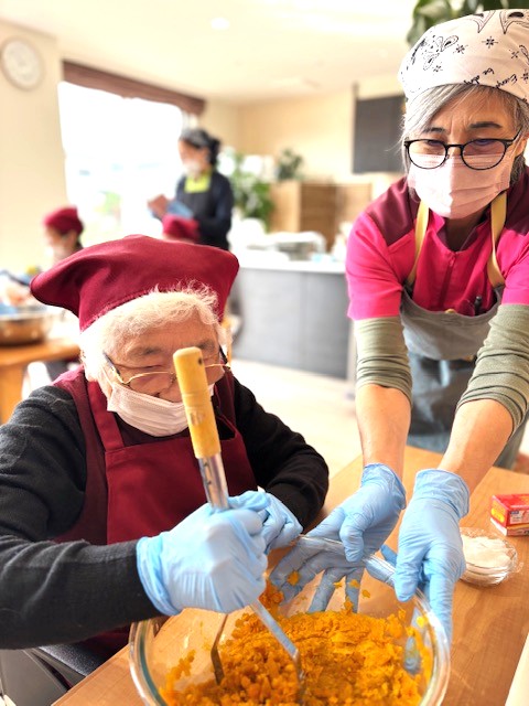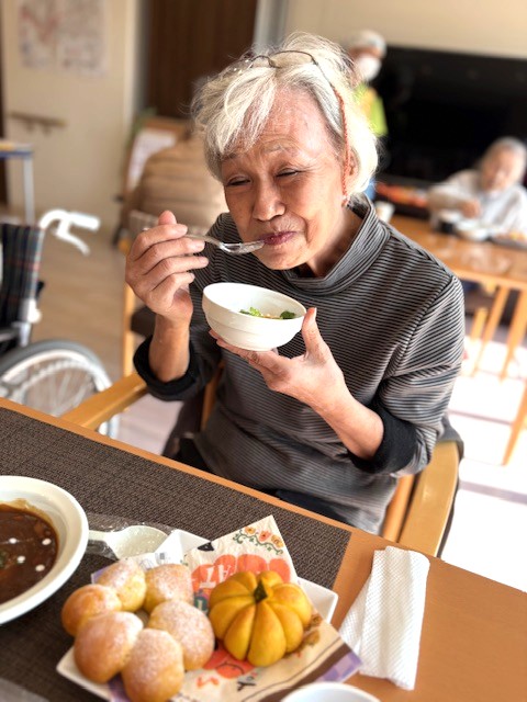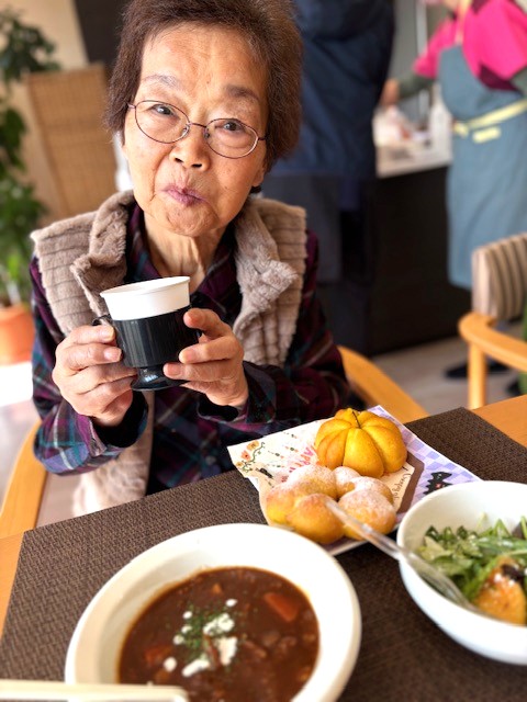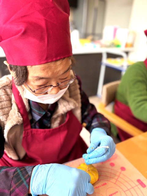 「かわいいね」「本当にかぼちゃの形になったね」と、笑顔で喜んでいらっしゃいました。