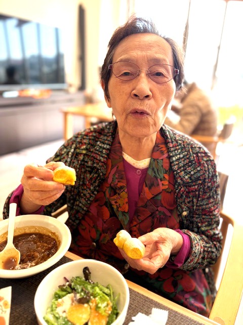 ご自身で作ったパンをお皿に乗せ、「いただきます!」