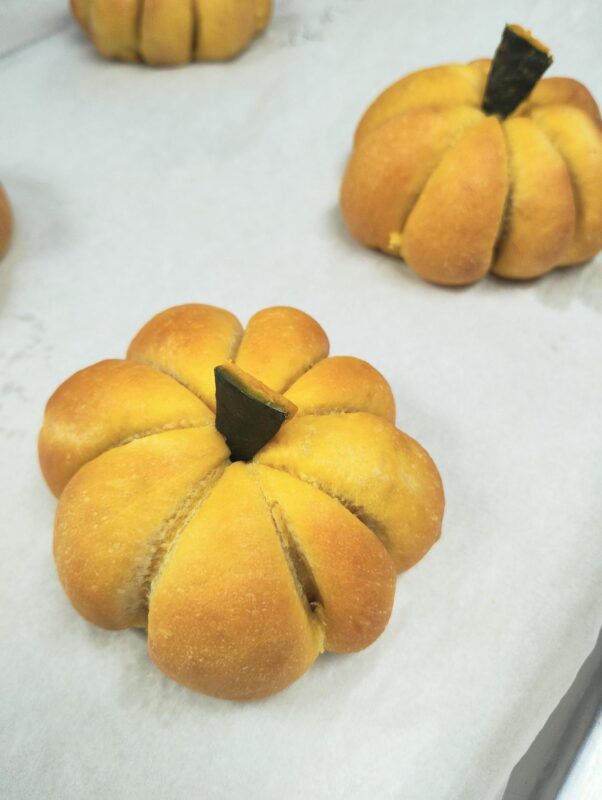 とっても可愛らしい「かぼちゃパン」と「お花のかぼちゃパン」が出来上がりました!