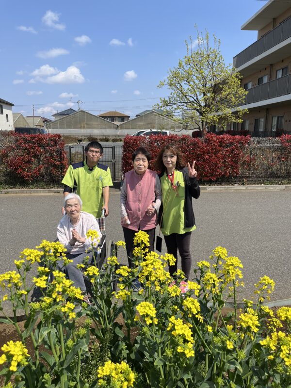 施設の横にある畑では、菜の花が満開です!農家さんのご好意で菜の花の中で写真を撮らせていただきました♪