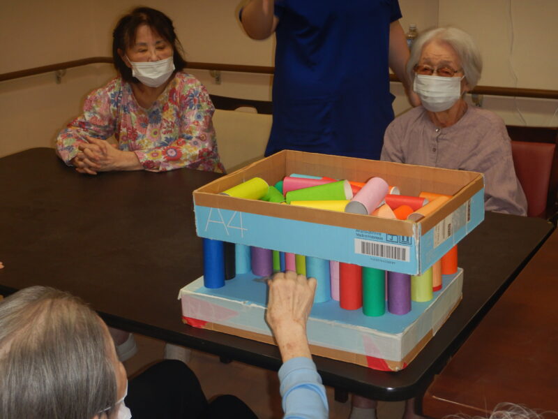 トイレットペーパーの芯を活用してます。一本一本抜かれるたびに増えていくドキドキ感。