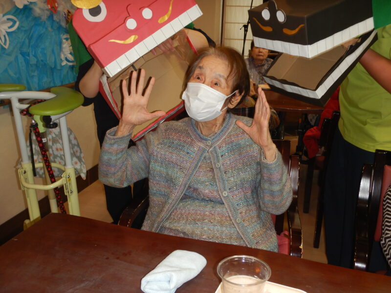 職員がお題を引いてご利用者様が何のジェスチャーをしているかを当てるゲームです。
