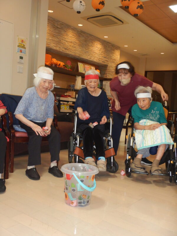 玉入れの様子です。職員の心の声が伝わってきますね。