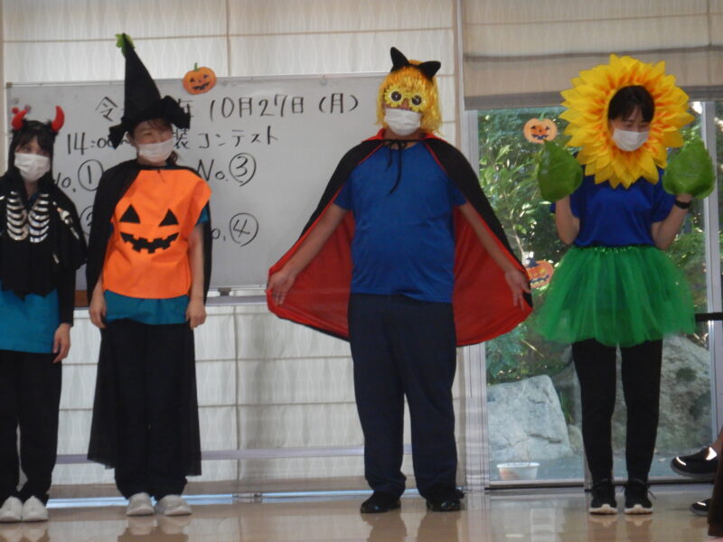 10月では、ハロウィンのイベントで職員四人で仮装を行いました。来年は、仮装にも力を入れたいです。