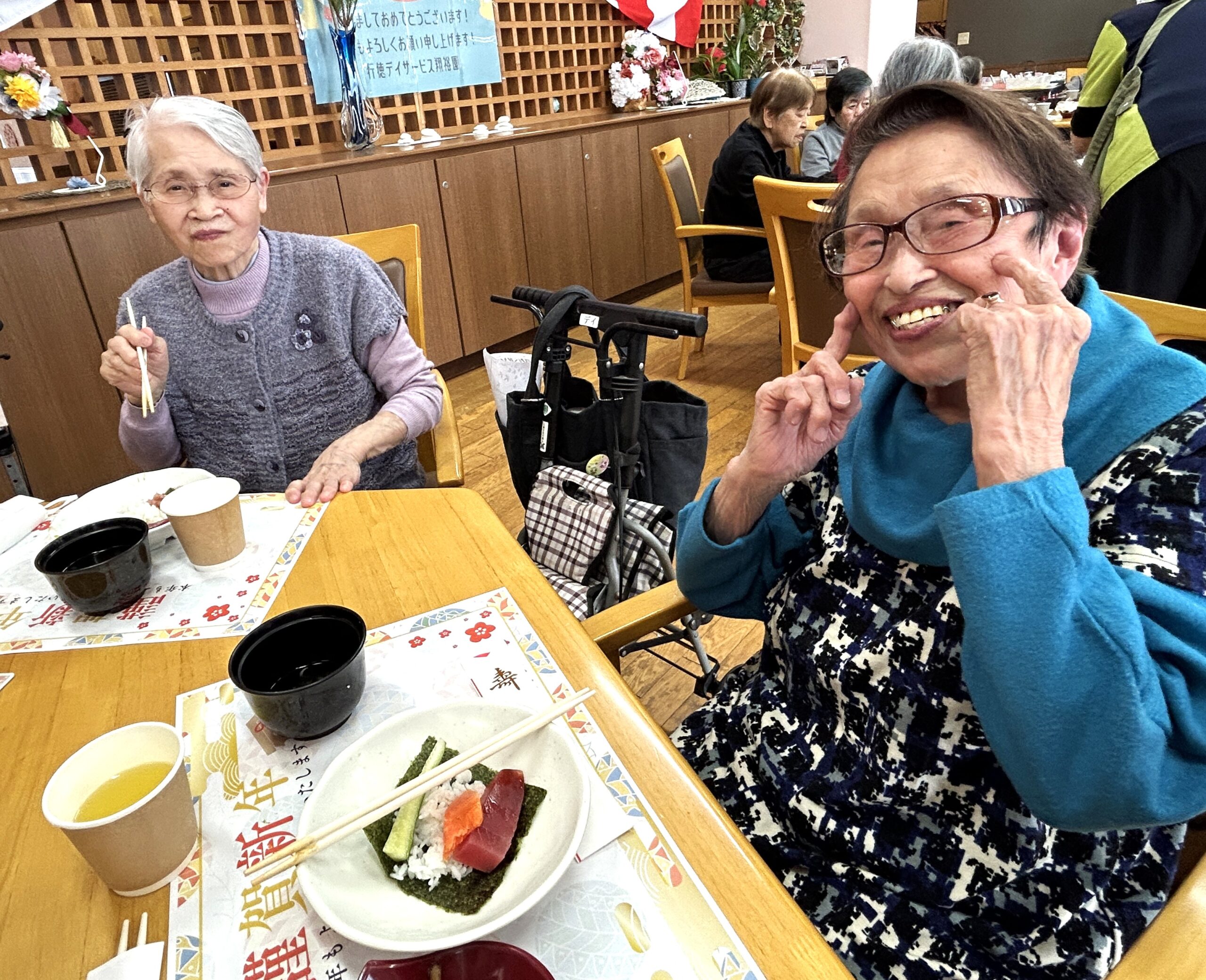 本日は新年会を行いました!(^^)! 「手巻き寿司」をご用意しました!!皆さんとても喜んで頂きいつもよりたくさん食べて頂きました(^^♪ 午後からはお正月らしく「福笑い」を行いました(*^_^*)苦戦[...]
