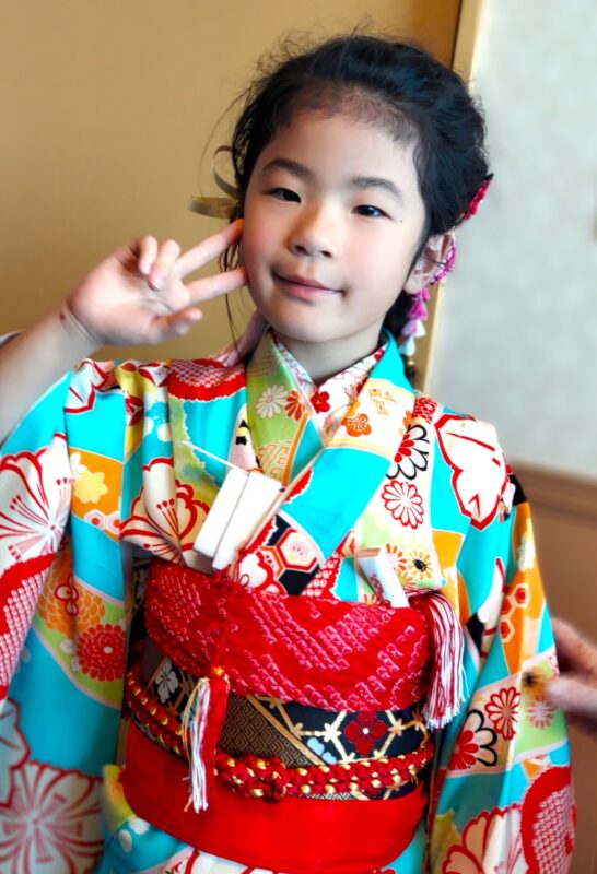 今日は、お客様のひ孫さん達が七五三のお詣りのあと、素敵な晴れ着姿でお越しくださいました。