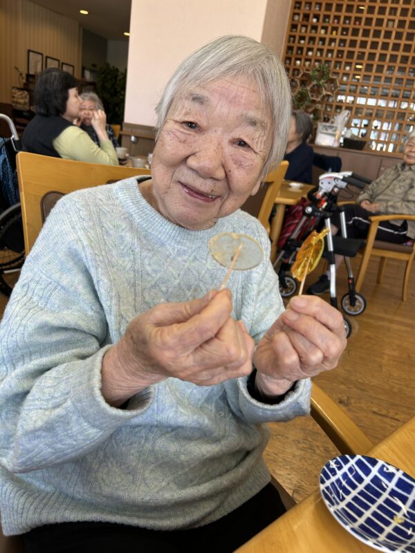 3月10日の「砂糖の日」にちなんで、デイサービスではべっ甲飴づくりをみな様と行いました。
