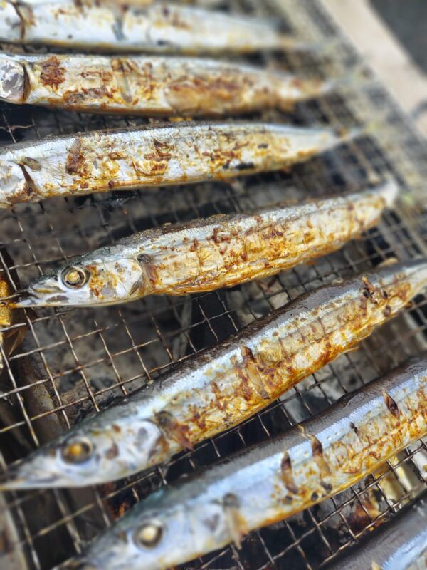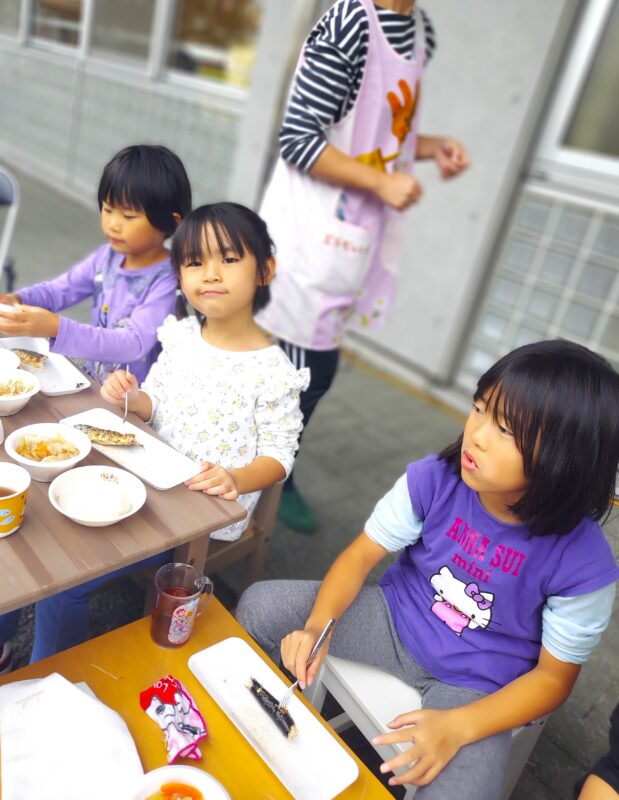 美味しい!、さんまや豚汁を頬張る子供たち。。。