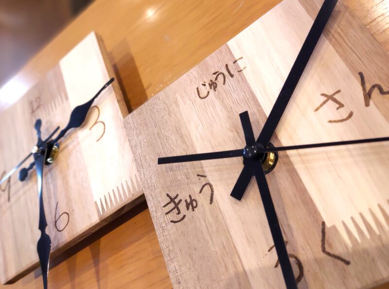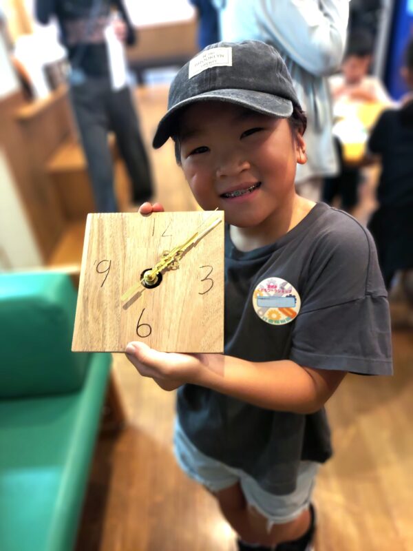 みなさんとっても真剣に製作して、世界に一つの素敵な時計の出来上がりです。