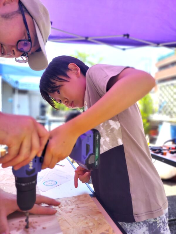 DIYでは昨年の夏も来てくれた小学生や、工具に初めて触れる小学生も!